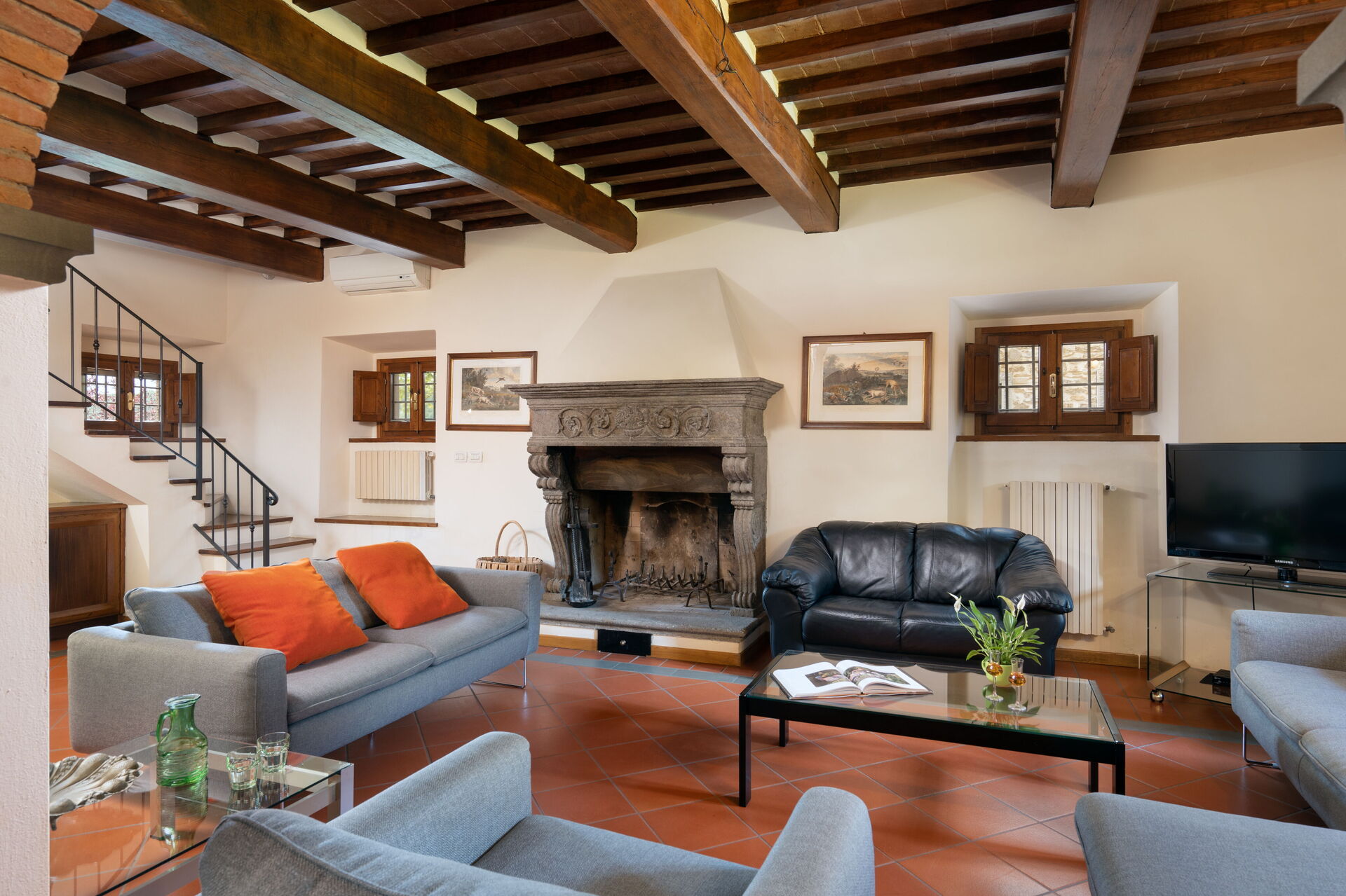 Vacation rental Villa Castelluccio - Arezzo, Toscana is a lovely property (340 sq m) that includes air conditioning, hot tub and WiFi internet. The property can accommodate up to 14 guests comfortably in seven bedrooms with nine bathrooms. Conveniently located 3 km (2 mi) from Vogognano, Italy in the tourist area "Casentino Valley" and only 23 km (14 mi) from Arezzo.