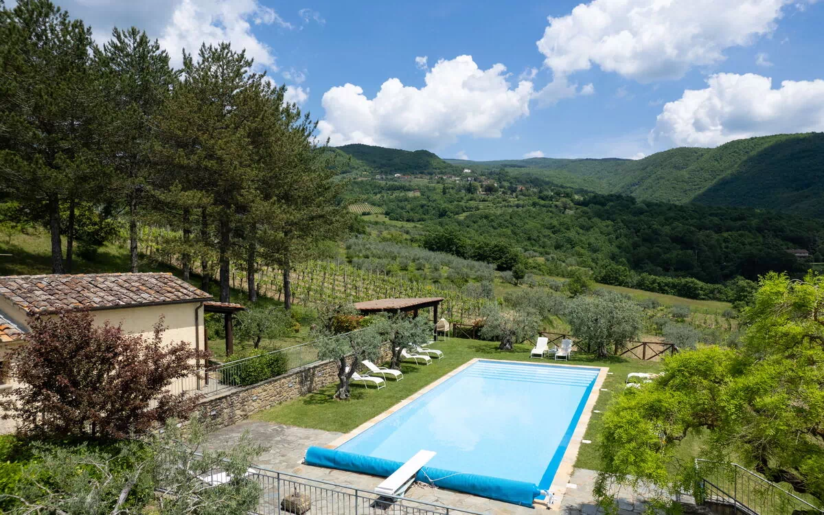 Villa Olivi - Subbiano, Toscana, Pool And Nature is located 3 km (2 mi) from Vogognano, Italy and only 22 km (14 mi) from Arezzo in the tourist area "Casentino Valley". Vacation rental Villa Olivi - Subbiano, Toscana, Pool And Nature is a beautiful property (160 sq m) that includes air conditioning, WiFi internet and private pool. The property can sleep up to eight guests comfortably in four bedrooms with five bathrooms.