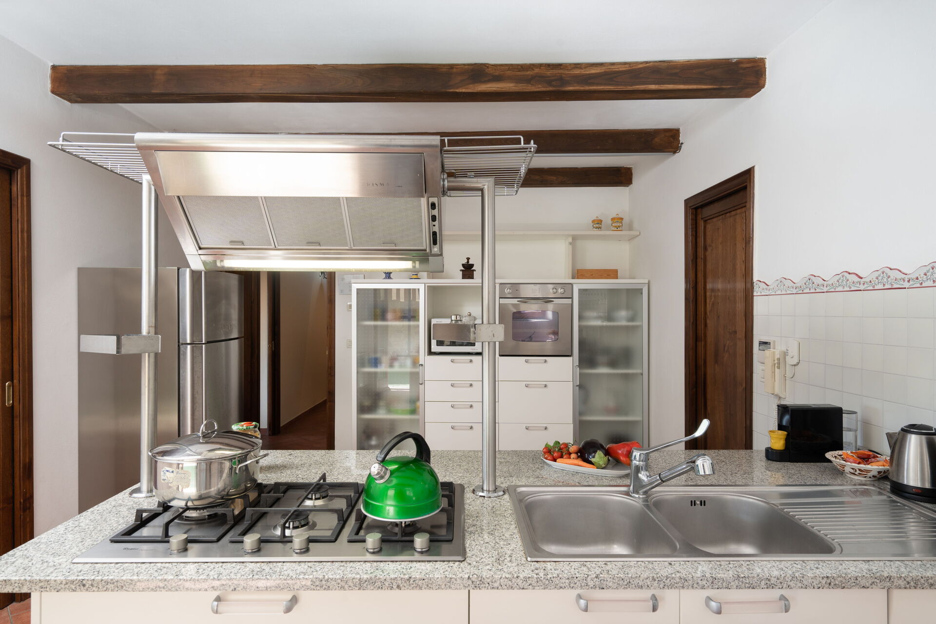 Kitchen: well equipped kitchen, dishwasher, fridge, freezer, microwave, stove top, oven, italian coffee machine, washing machine, WIFI internet, exit to the garden.