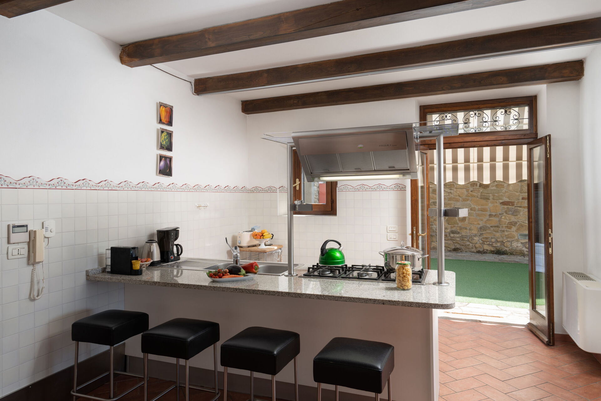 When you arrive you will be greeted by the owner or manager where you’ll find a nice clean well-maintained property perfect for a splendid vacation in Tuscany. After a busy day of shopping, spend some time with friends and family poolside enjoying a glass of wine - a perfect way to relax at the end the day. For your pleasure, on the grounds there is a barbecue grill and hot tub. Dining with friends and family is a huge part of the Tuscan culture. Take advantage of the well-equipped kitchen to prepare meals using local produce while on your holiday. The kitchen includes coffee machine, microwave, stove and refrigerator, as well as, plenty of tableware and cutlery for up to eight people.