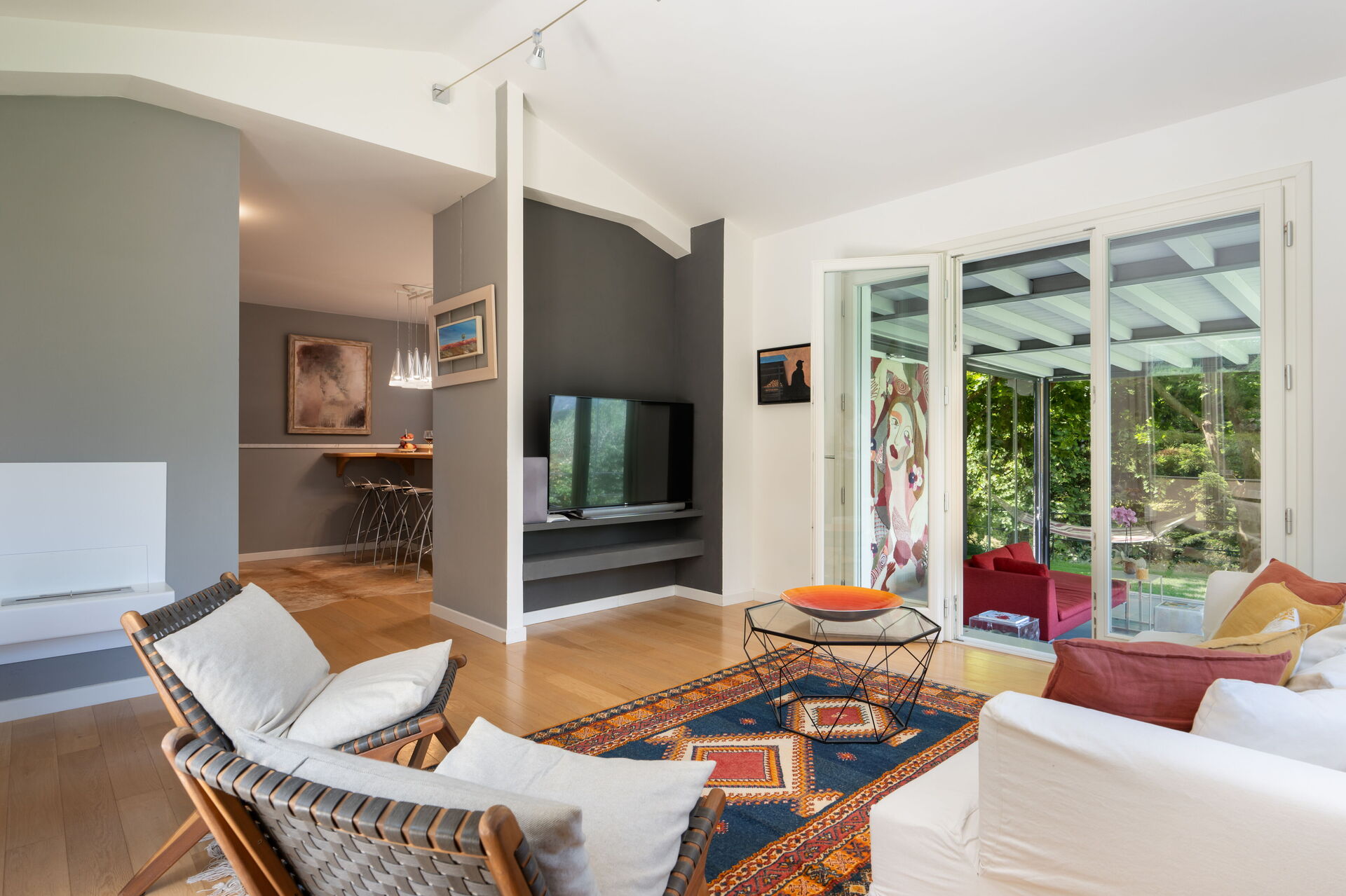 Kitchen + living room: well equipped kitchen, dining table, fridge, freezer, stove top, oven, sofa, WIFI internet, air conditioning, television, exit to the veranda.