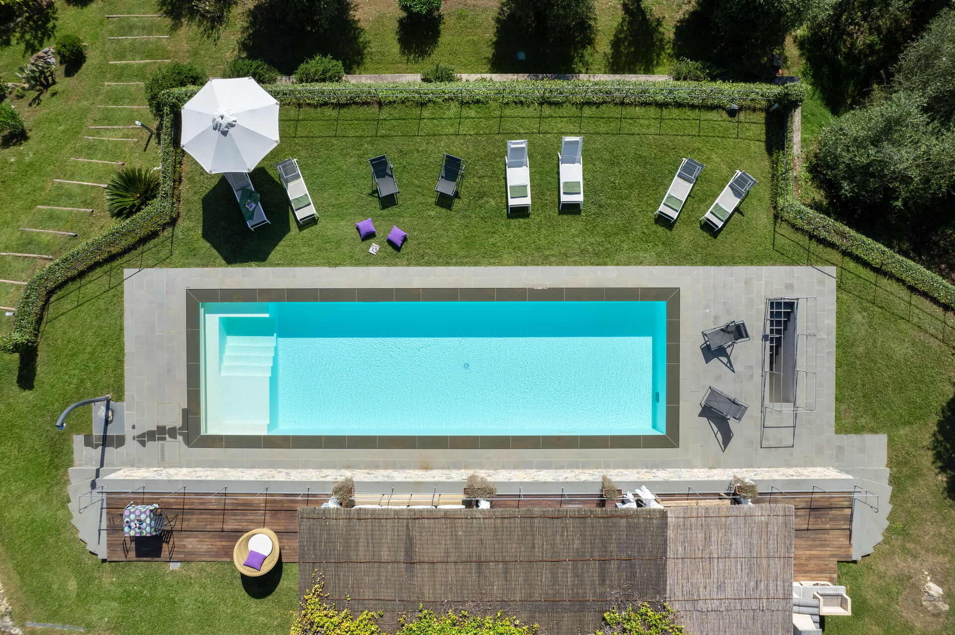 Property Luxury Green Marignana Villa, Versilia, Pool, Ac, is a beautiful property (240 sq m) that includes hot tub, WiFi internet and air conditioning. The property can sleep up to eight people comfortably in four bedrooms with four bathrooms. Conveniently located 9 km (6 mi) from Camaiore, Italy and only 13 km (8 mi) from Viareggio.