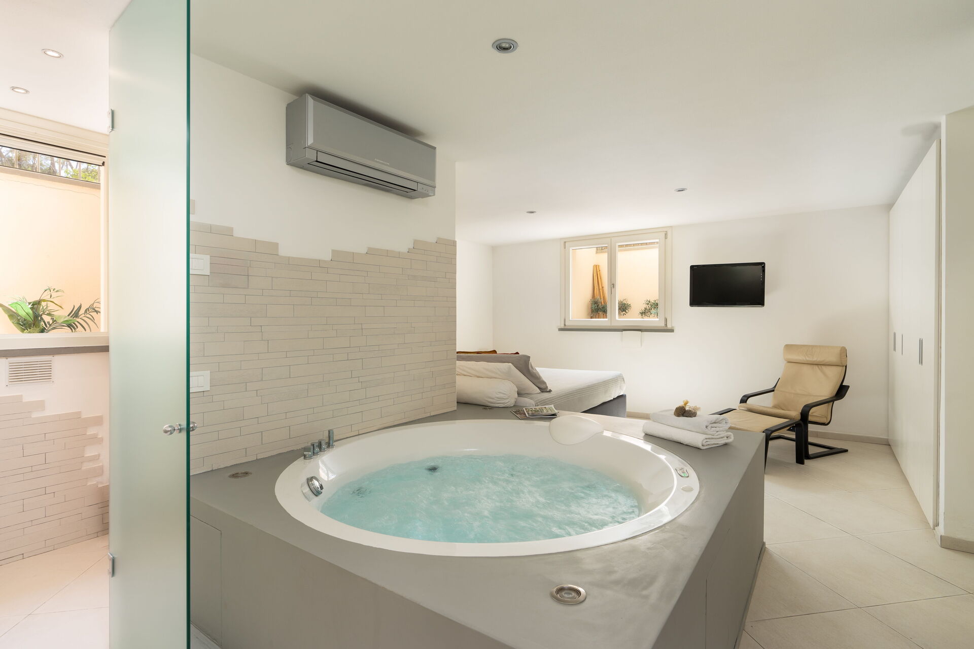 Bedroom + Ensuite Bathroom: double bed, WIFI internet, air conditioning, whirlpool bathtub, double basin, toilet, bidet.