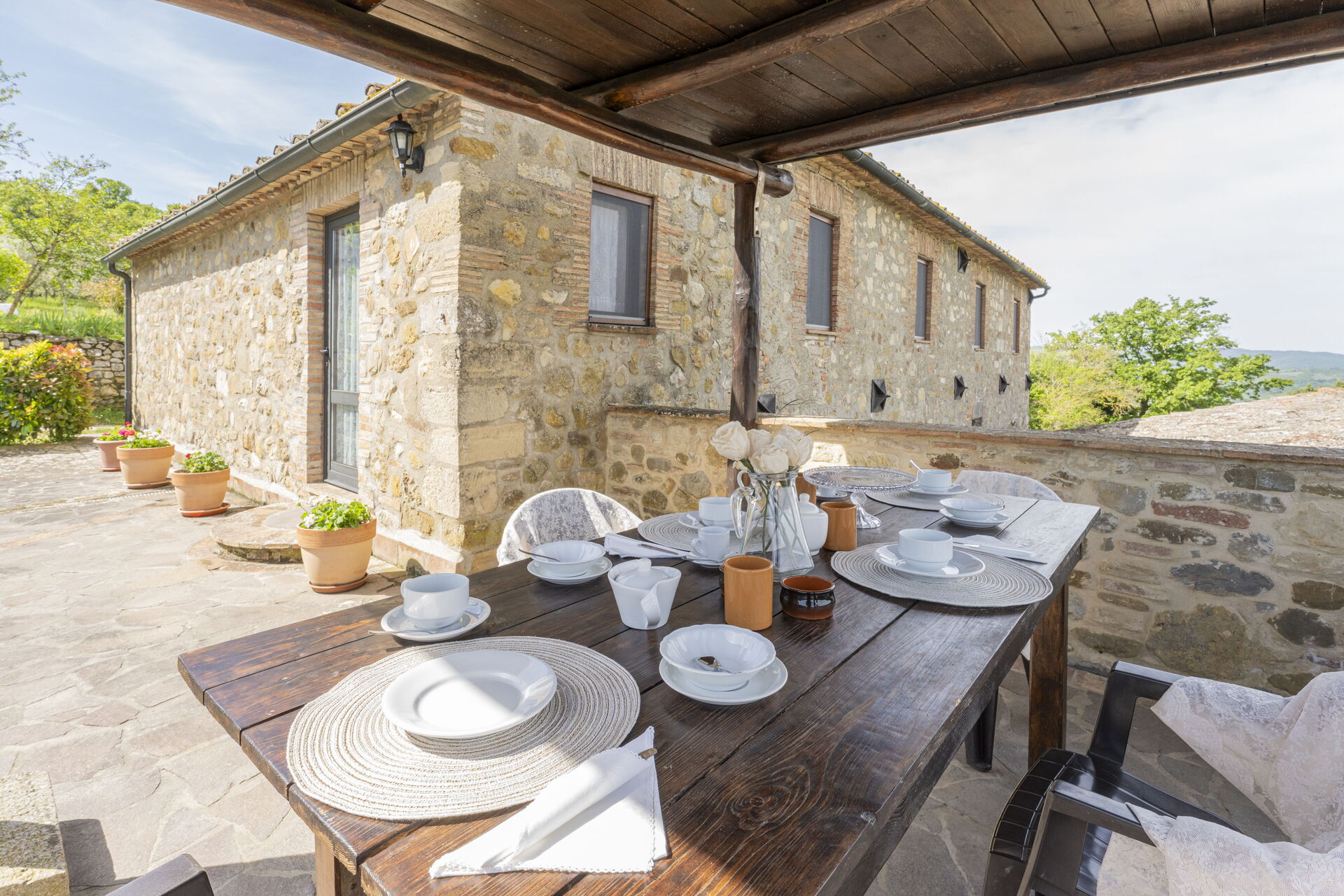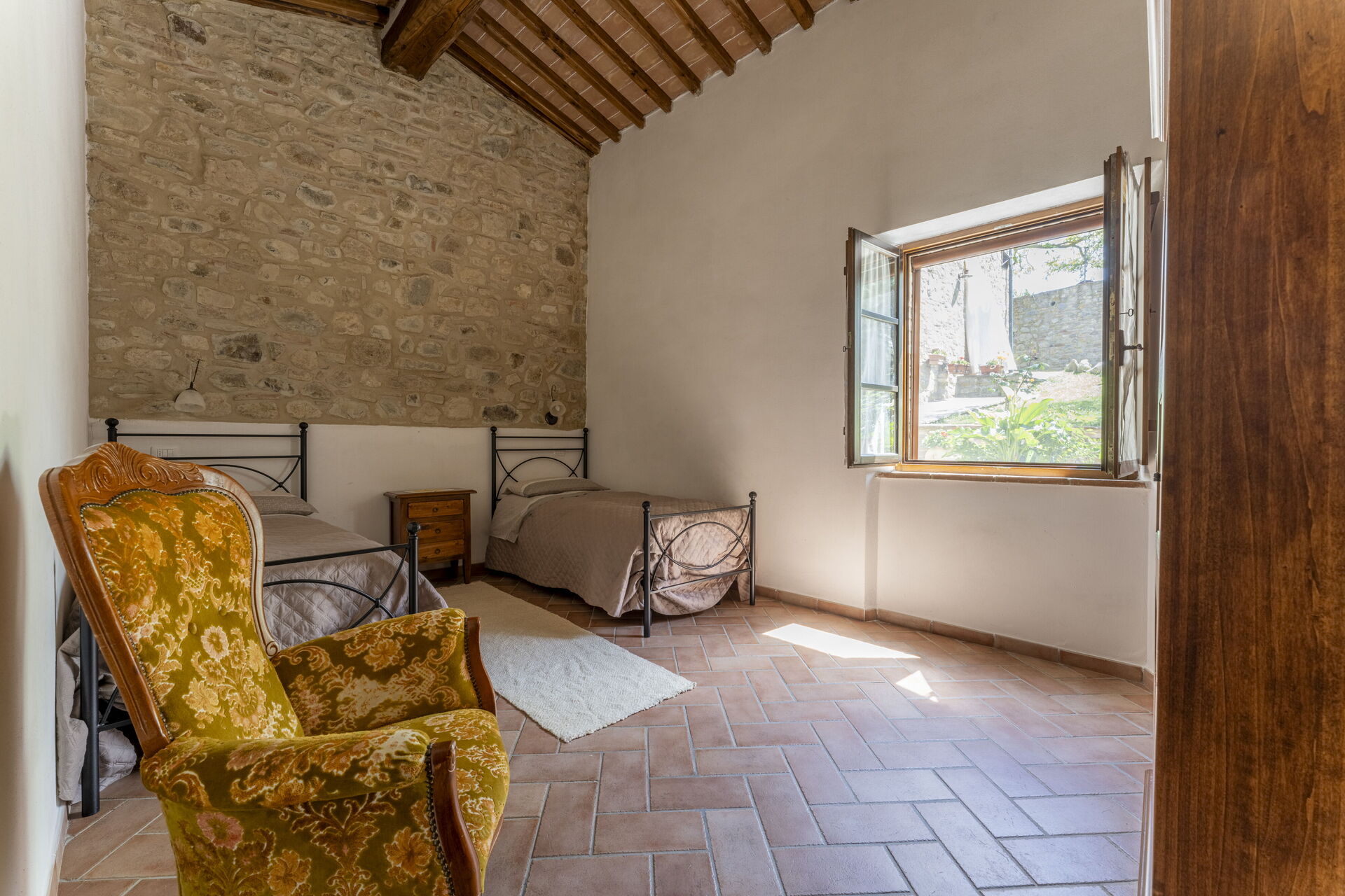 Property Podere Marcigliana - Radicondoli is a lovely stone building that includes WiFi internet and shared pool. The villa / farmhouse / home has been designed with a total of three independent units. The property can accommodate up to 15 guests comfortably in seven bedrooms with four bathrooms. Podere Marcigliana - Radicondoli is located 6 km (4 mi) from Radicondoli, Italy and only 44 km (27 mi) from San Gimignano in the tourist area "Central Tuscany".