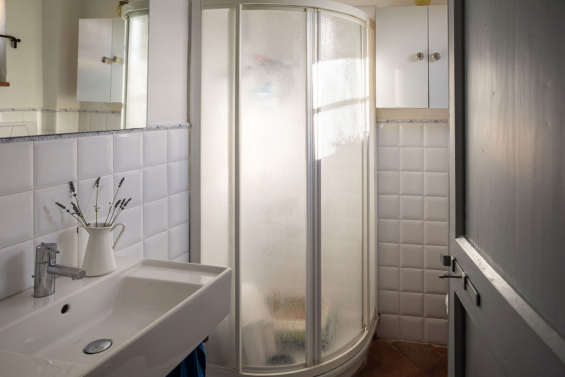 Bathroom 1: basin, toilet, bidet, shower.