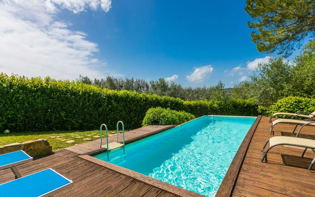 Situated in San Casciano In Val Di Pesa, Italy, the "Sole" is a renovated, three-story cozy farmhouse surrounded by trees and vineyards. The property offers a terraced garden with wildlife, an above-ground swimming pool (3 x 8 m, seasonal availability: 31.May - 30.Sep), and outdoor amenities like a shower, terrace, garden furniture, and barbecue. Additionally, you can enjoy Internet Wifi, parking, and a yard during your vacation rental stay.