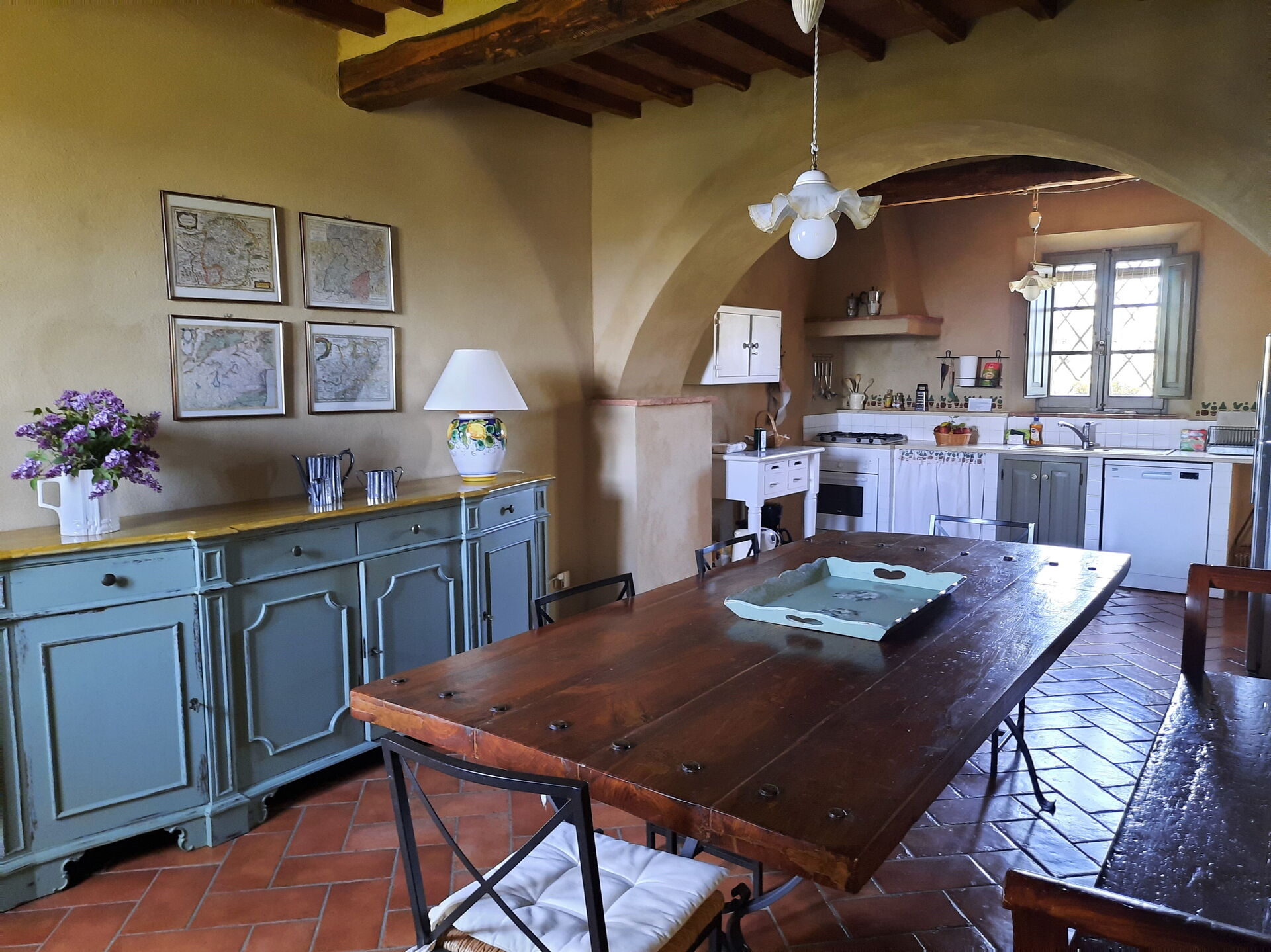 After arriving at Villa San Giovanni you’ll find a beautiful clean well-maintained property with views of the hills perfect for a peaceful holiday in Tuscany. After a hectic day of visiting museums, spend some time with friends and family poolside enjoying a glass of wine - a perfect way to unwind at the end the day. Also available outside are a patio and barbecue grill. If you enjoy cooking for family and friends there is a well-equipped kitchen including coffee machine, microwave, toaster, stove and refrigerator, as well as, plenty of tableware and cutlery for up to ten people. If you prefer to dine 'al fresco', there is a fully furnished veranda where you can enjoy the weather while dining outdoors.