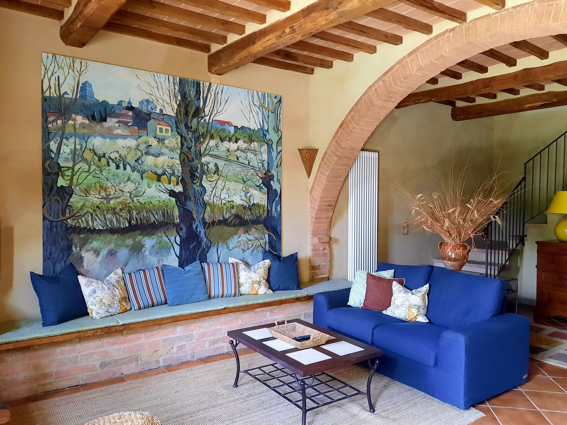 Vacation rental Villa San Giovanni is a nice property (320 sq m) that includes private pool, air conditioning and WiFi internet. The property can sleep up to ten guests comfortably in five bedrooms with six bathrooms. Conveniently located 1 km (4171 ft) from San Giovanni D'asso, Italy in the tourist area "Orcia Valley" and only 19 km (12 mi) from Montalcino.