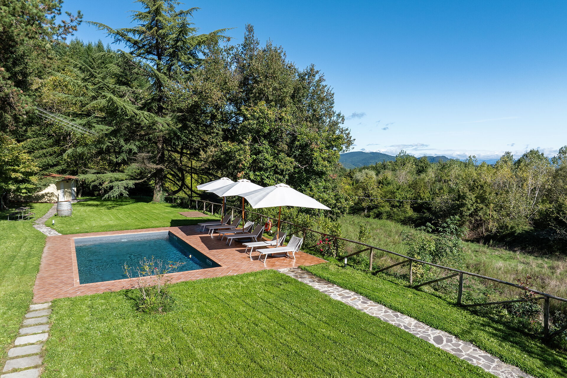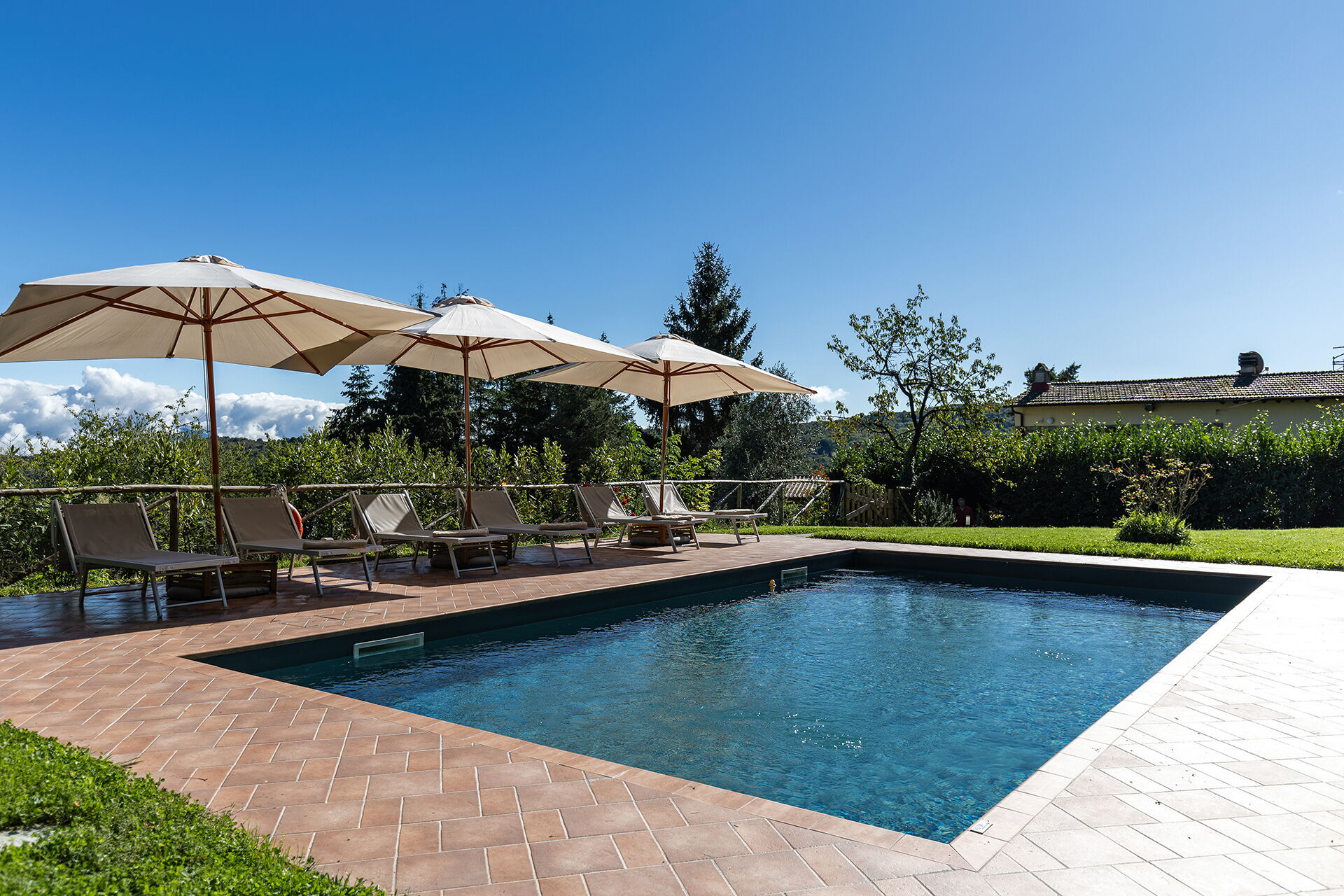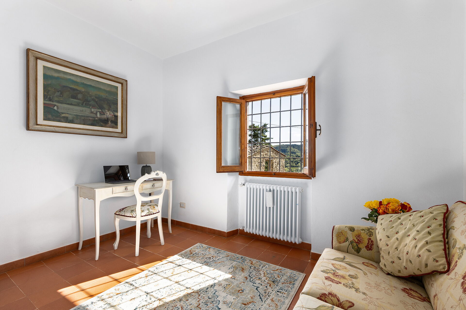 After arriving you’ll find a beautiful clean well-maintained property with views of the hills ideal for a splendid holiday in Tuscany. After a busy day of sightseeing, spend some time with friends and family poolside enjoying a glass of wine - a perfect way to relax at the end the day. Outdoors you will also find a barbecue grill and patio. Sharing a meal with friends and family is a huge part of the Tuscan culture. Take advantage of the well-equipped kitchen to prepare meals using local produce while on your vacation. The kitchen includes coffee machine, microwave, toaster and refrigerator, as well as, plenty of tableware and cutlery for up to five people.