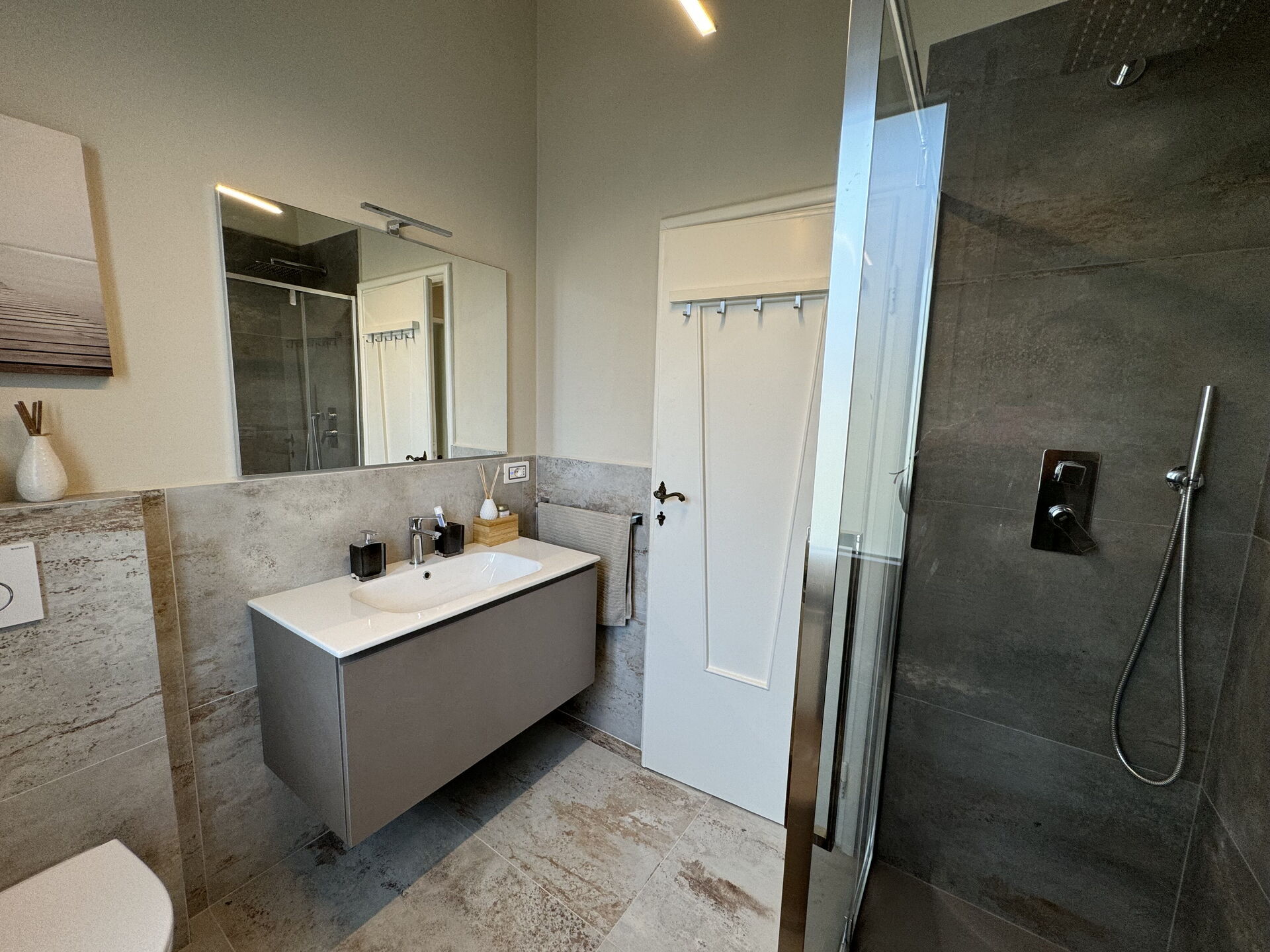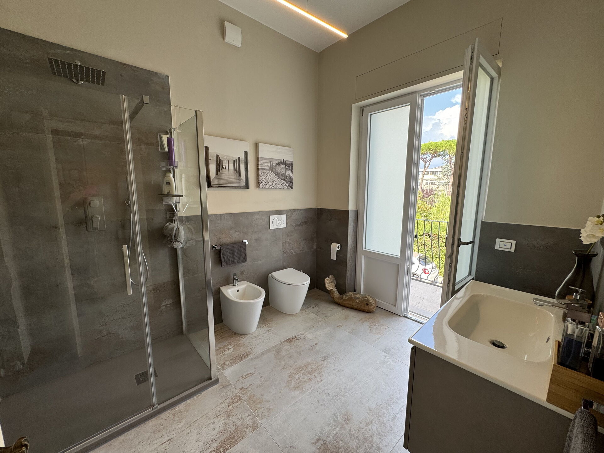 Bathroom: basin, toilet, bidet, shower, mosquito net.
