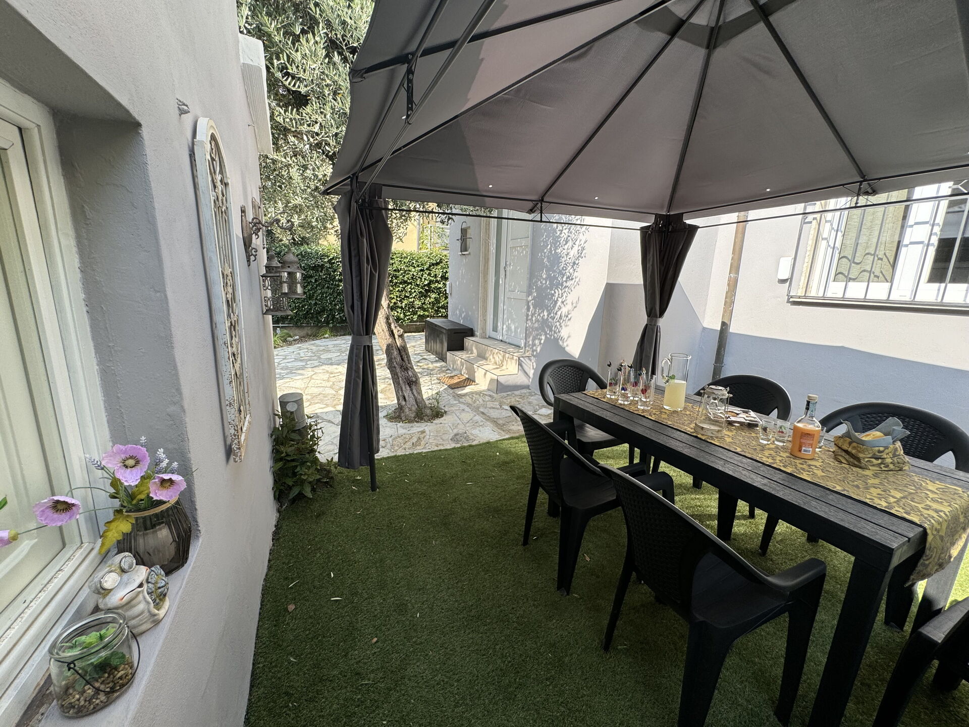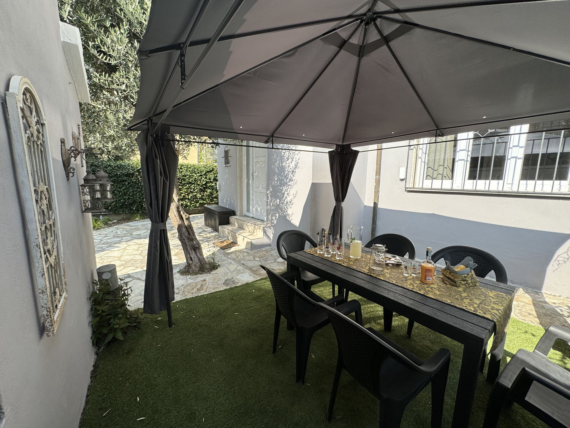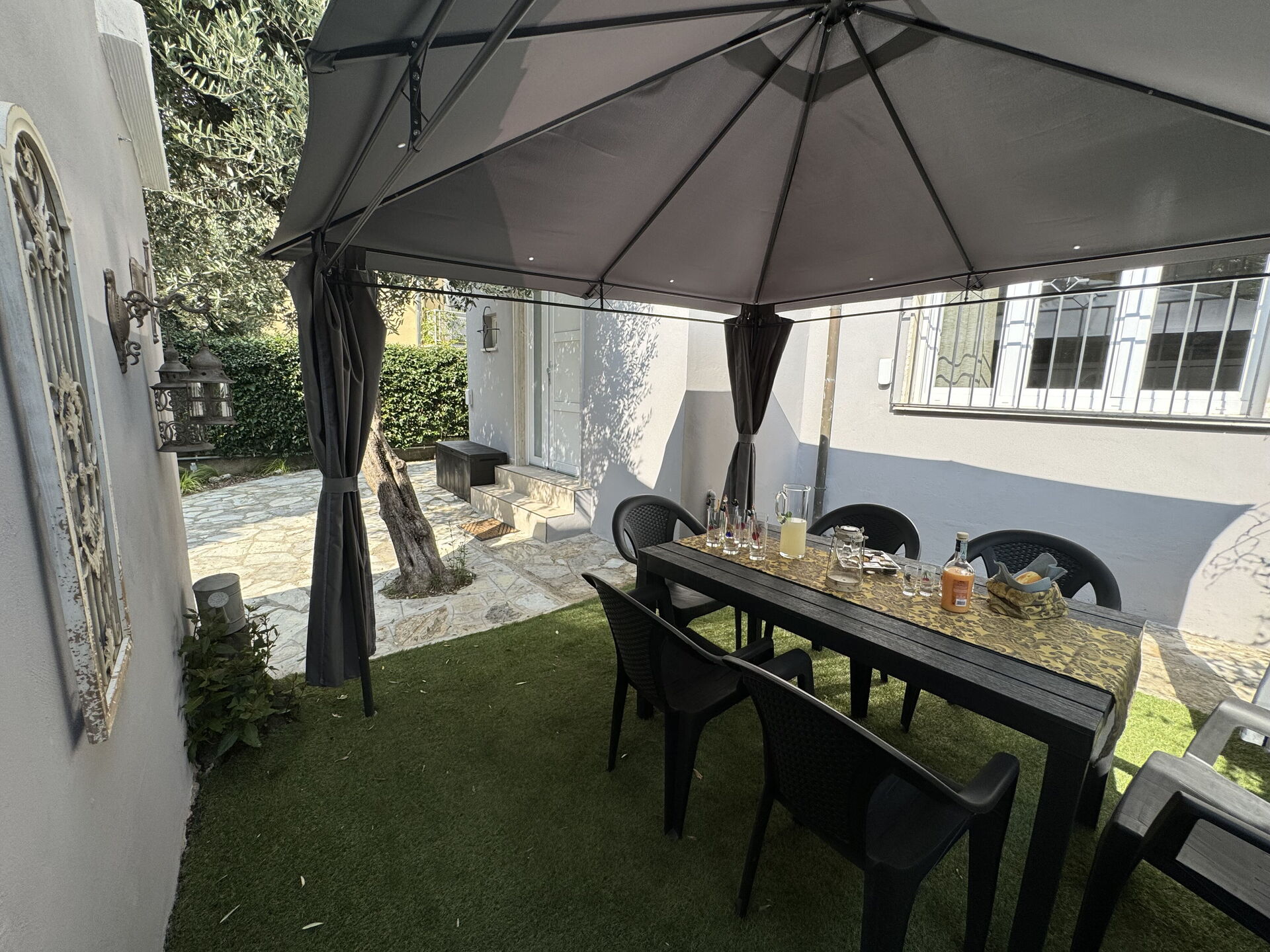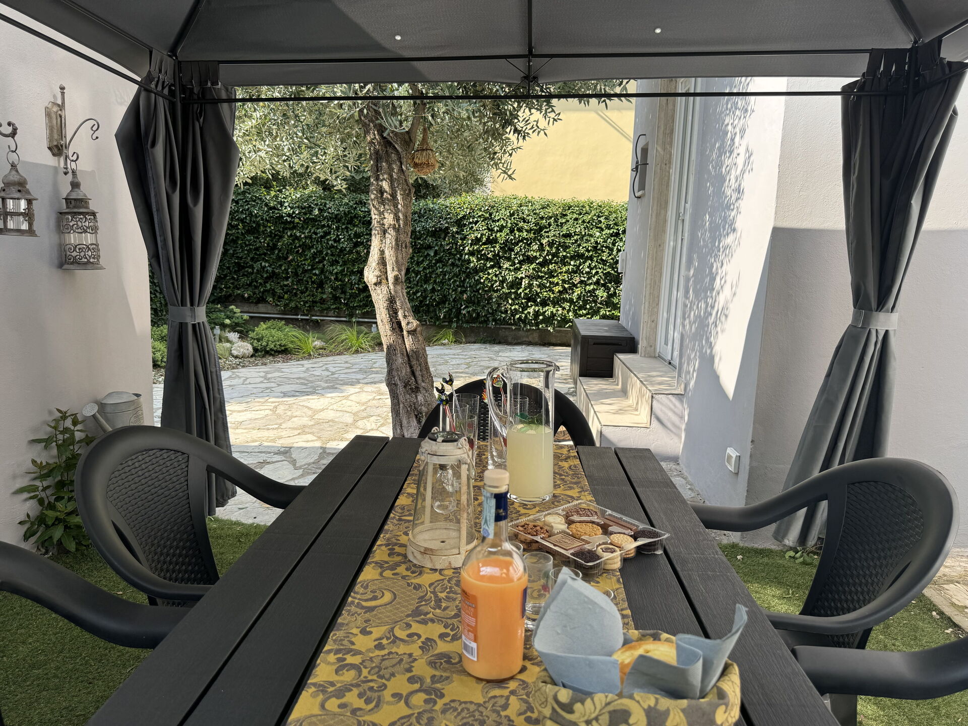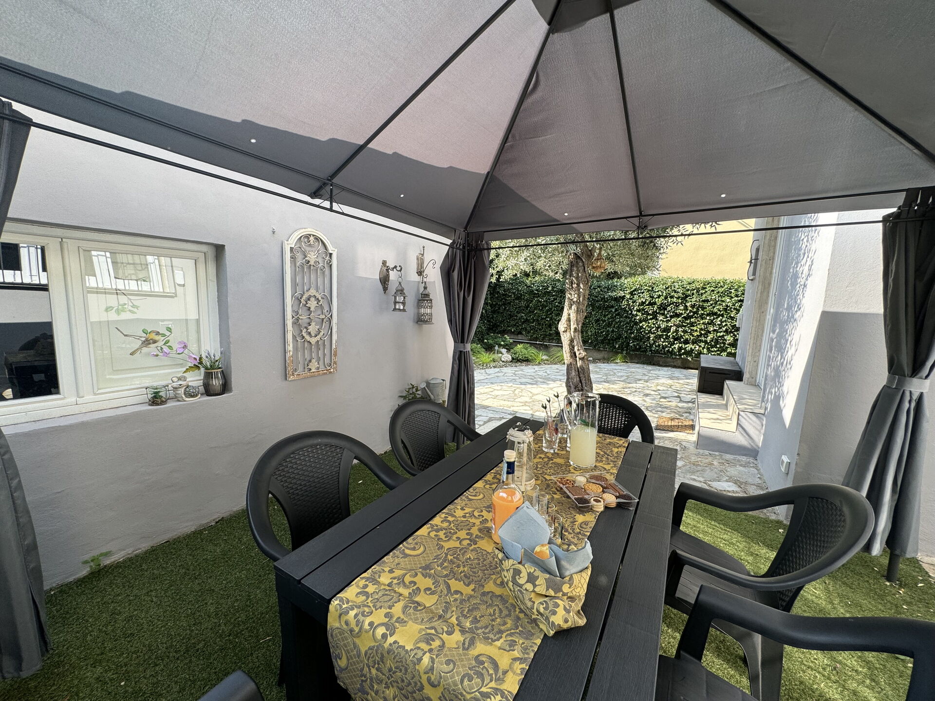 Garden: barbecue, al fresco dining, dining table (people: 6), gazebo, garden furniture, fenced.