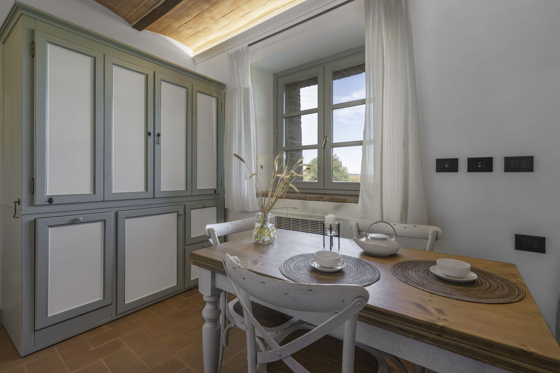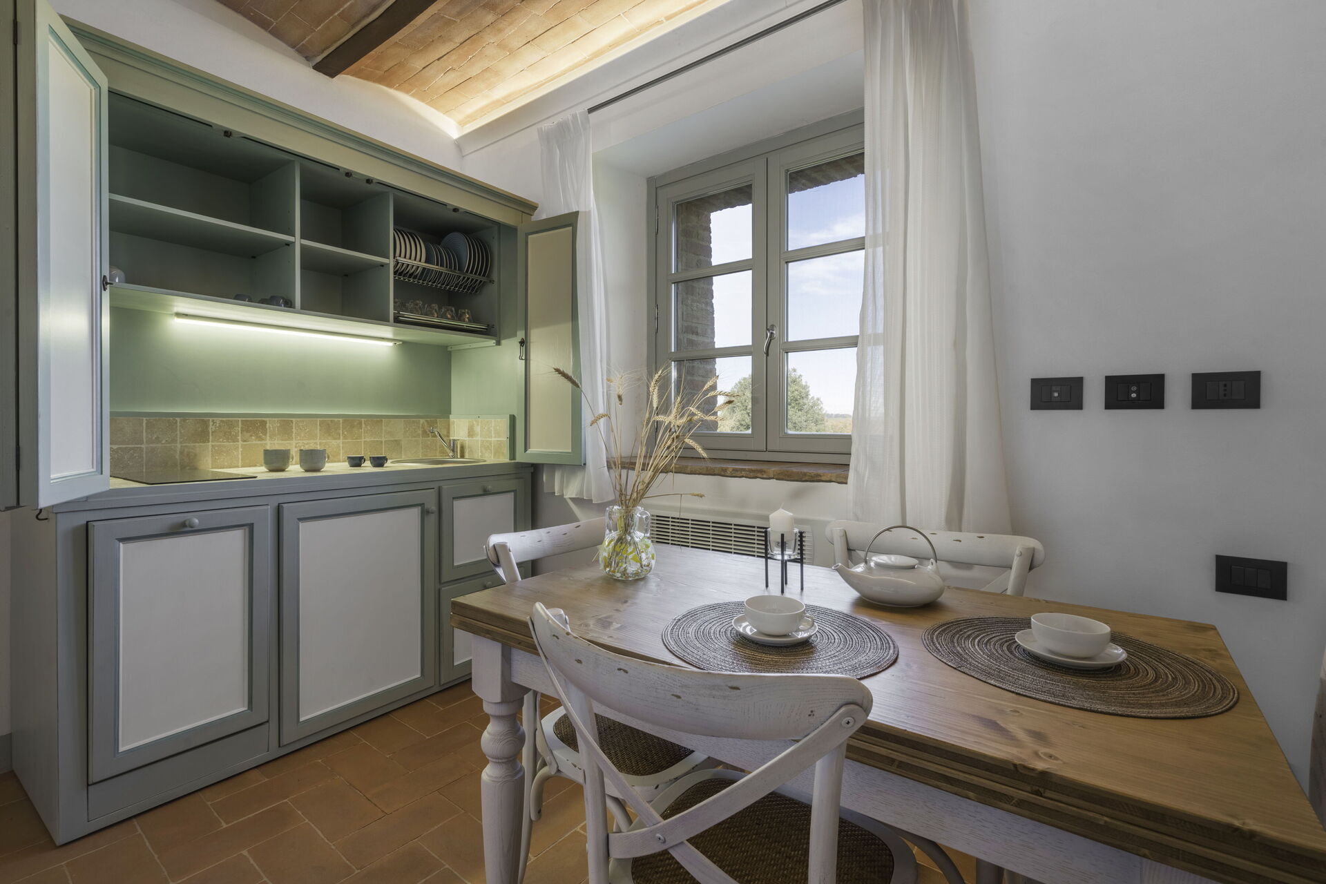 After arriving you will be greeted by the owner or manager where you’ll find a lovely clean well-maintained property with views of the hills perfect for a relaxing holiday in Tuscany. After a busy day of sightseeing, spend some time with friends and family poolside enjoying a glass of wine - a perfect way to relax at the end the day. Dining with friends and family is a big part of the Tuscan culture. Take advantage of the kitchen to prepare meals using local produce while on your vacation. The kitchen includes coffee machine, microwave, stove and refrigerator, as well as, plenty of tableware and cutlery for up to two people.