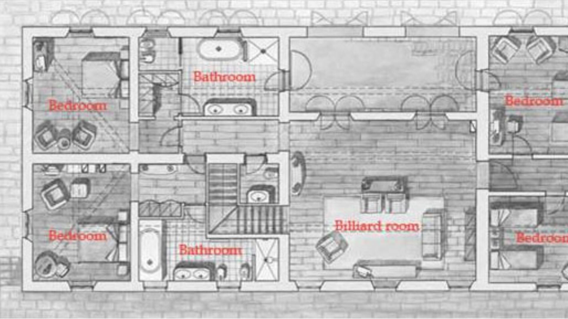 The main building spans two floors and provides exceptional space for comfortable living. The ground floor presents a television room, an expansive living room featuring a fireplace, a computer and fax office, a dining room with its own fireplace, a fully equipped kitchen, a laundry room, and a storage room. The first floor is dedicated to the sleeping quarters, comprising two double bedrooms each accompanied by a private bathroom and wardrobe, two additional double rooms with ensuite bathrooms, a bedroom furnished with a king-size bed, and a twin bedroom, with these last two rooms sharing a bathroom that includes both a shower and bathtub. The separate annex provides a bedroom, a bathroom with shower, and a living room featuring a single sofa bed along with a kitchenette. This configuration accommodates a maximum capacity of 14 guests across 7 bedrooms with 7 bathrooms throughout the property.