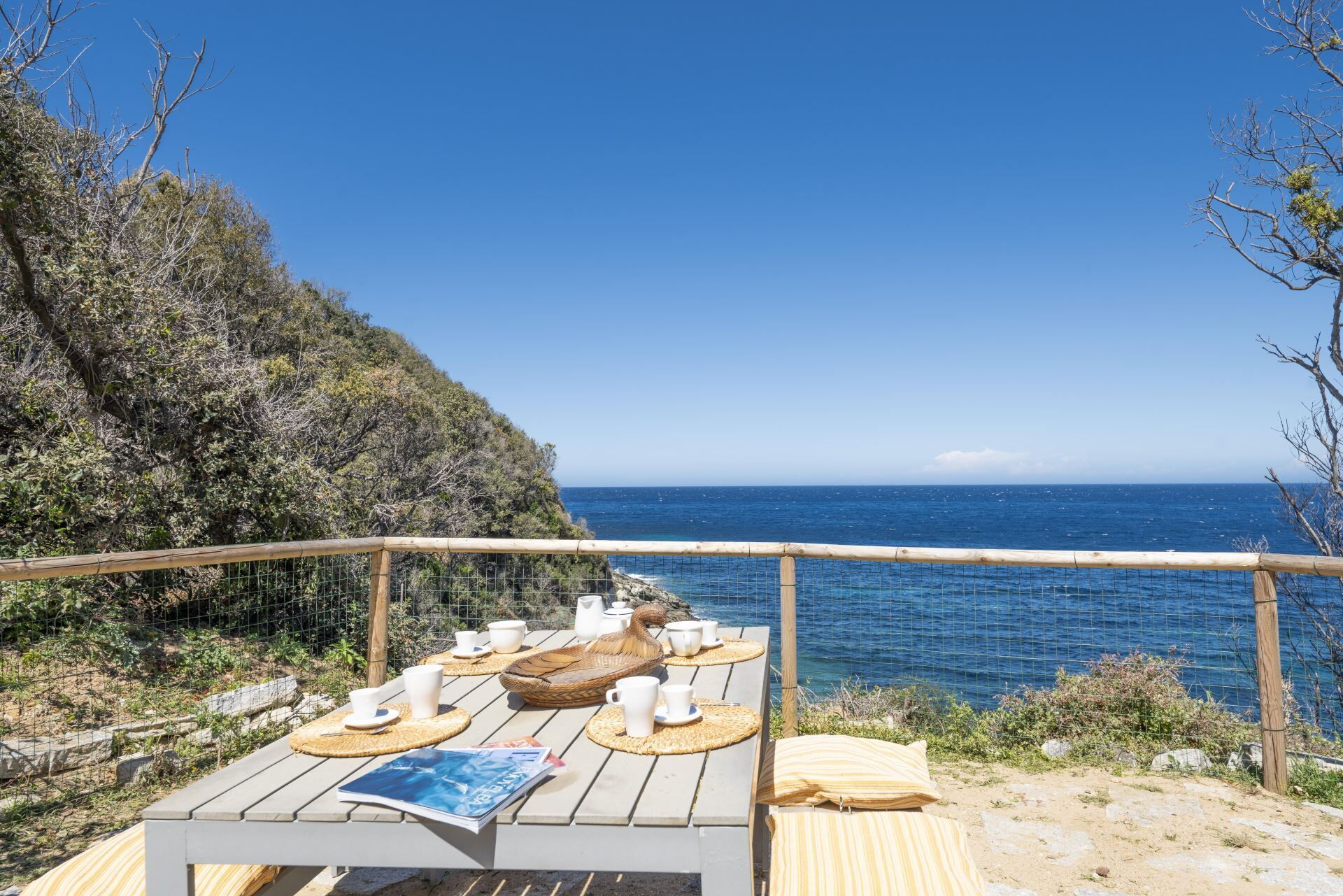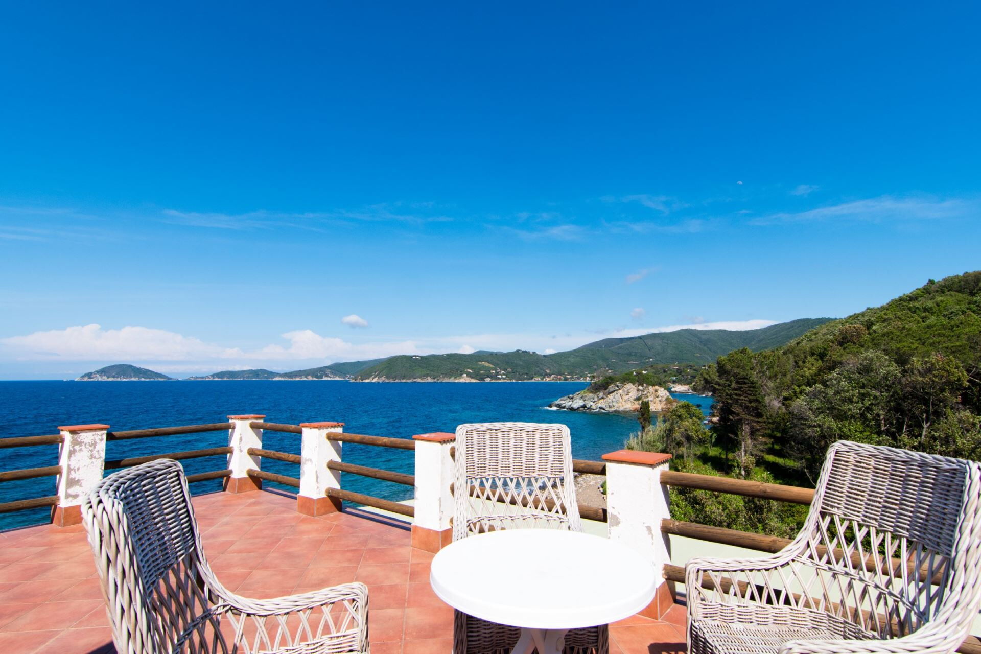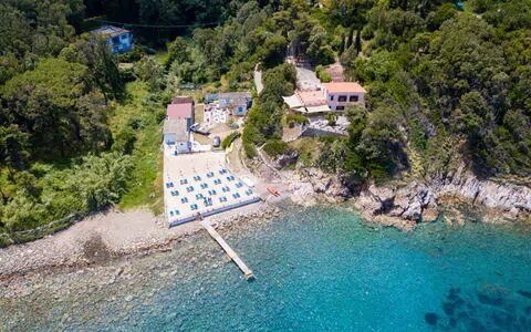 Villa Marciana enjoys a privileged location between the picturesque villages of Procchio and Marciana Marina on the north-western coast of the island of Elba. The property offers spectacular views encompassing the entire Gulf of Procchio, stretching to the dramatic Capo Enfola promontory and the enchanting Paolina cove, named after Napoleon's sister who famously bathed in its crystal-clear waters. The immediate surroundings provide direct access to the coastline, with the convenience of a nearby quiet public beach featuring a beach establishment with cold buffet and snack bar services. The strategic position allows you to explore the diverse attractions of Elba, from charming coastal towns and hidden coves to historical sites and natural landscapes. The area offers numerous opportunities for water sports, hiking, cycling and discovering the rich cultural heritage of this beautiful Mediterranean island.