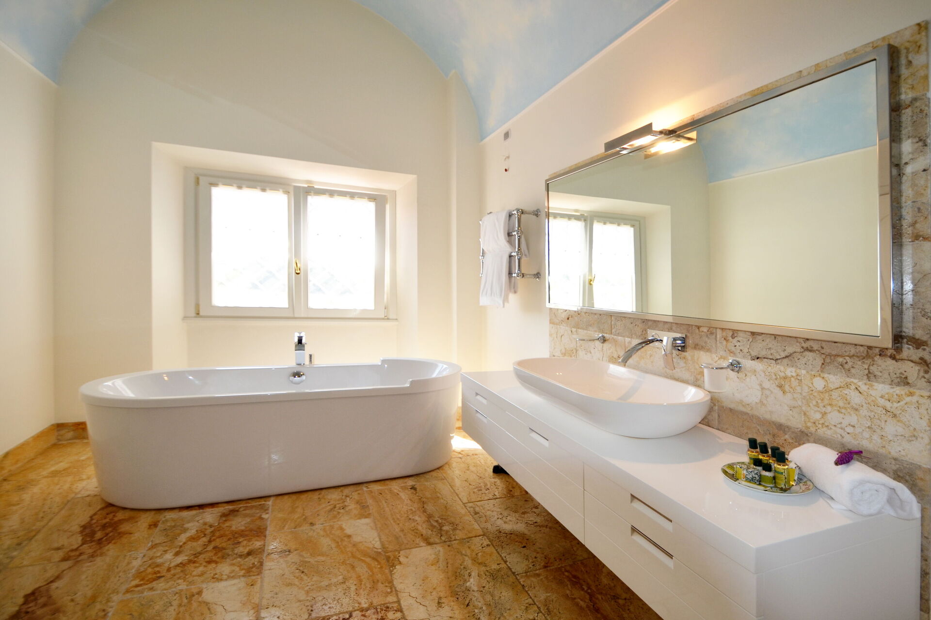 Bedroom + Ensuite Bathroom 3: double bed, two single beds, WIFI internet, air conditioning, mosquito net, basin, toilet, bidet, bathtub, shower.