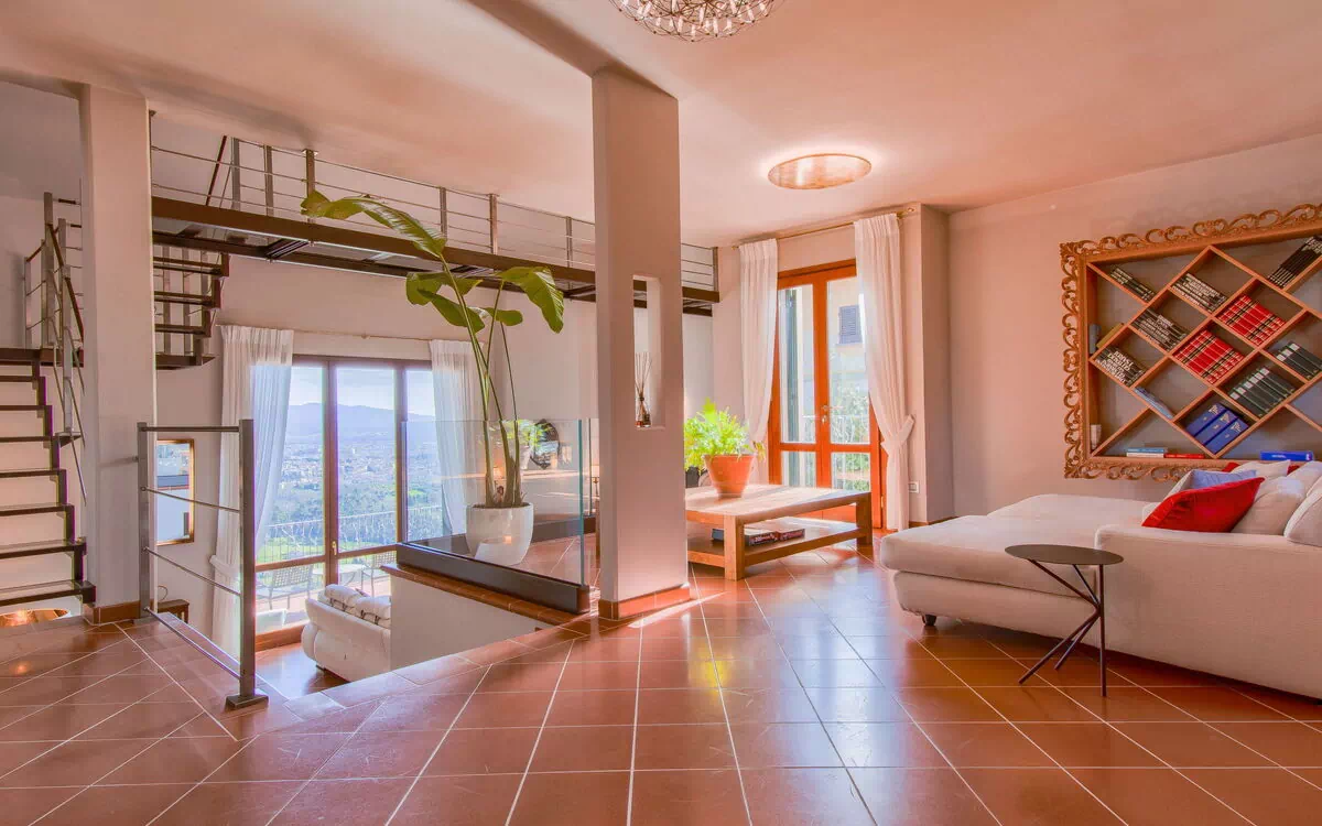 You are considering Villa Panorama, a modern and comfortable vacation rental offering a refreshing and serene retreat amidst the scenic surroundings of Montecatini Terme, Italy. This renovated two-story detached villa is surrounded by trees and boasts a private property spanning 1'200 m2, complete with a fenced natural garden of 250 m2. Indulge in the luxury of a salt water swimming pool (5 x 12 m, depth 150 - 250 cm) available seasonally from May 1st to October 15th, accompanied by an outdoor shower. The villa is well-equipped with essential amenities like a washing machine, tumble dryer, Internet Wifi, and parking facilities for up to 4 cars directly at the house, with additional public parking just 50 meters away.