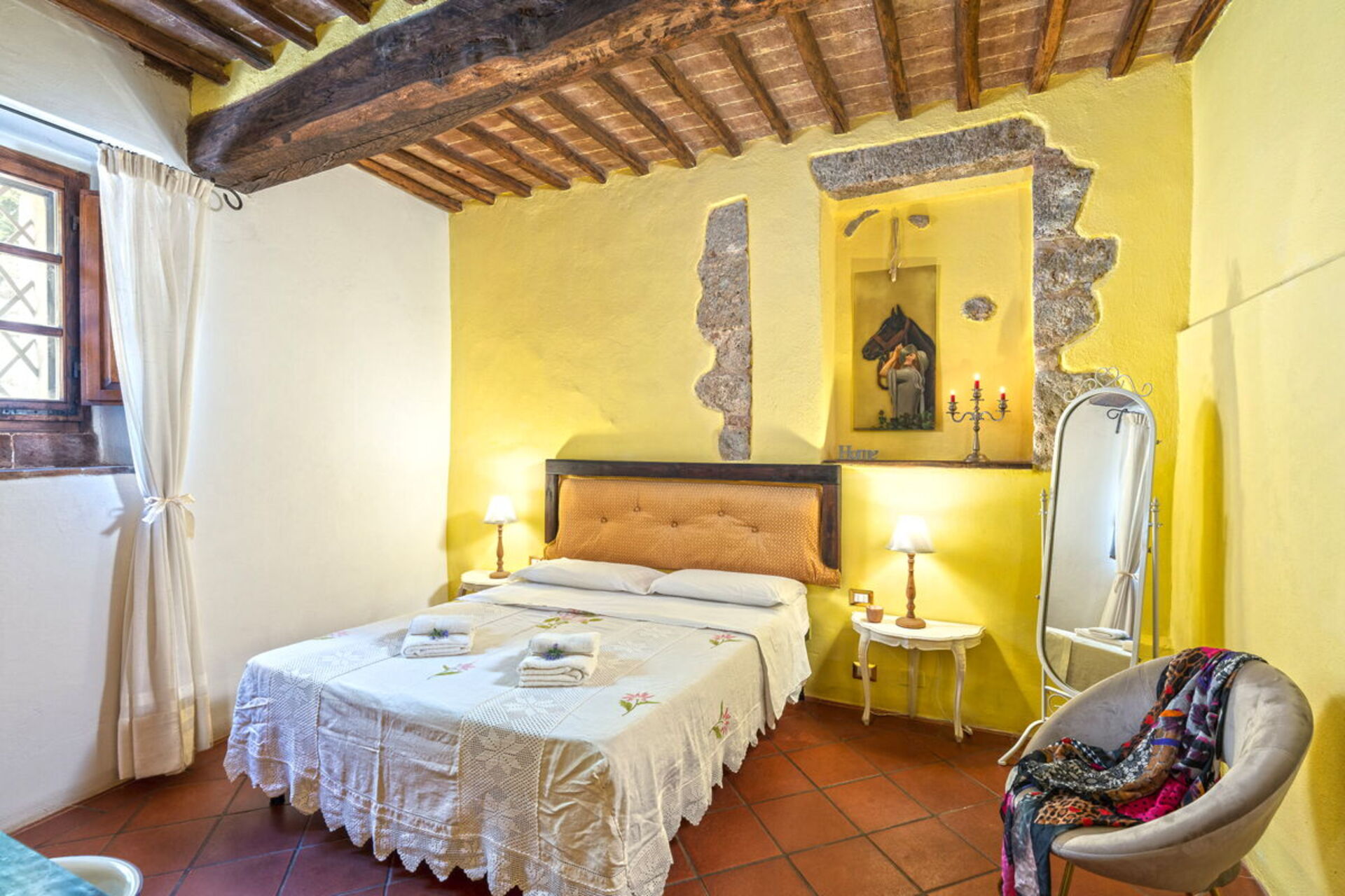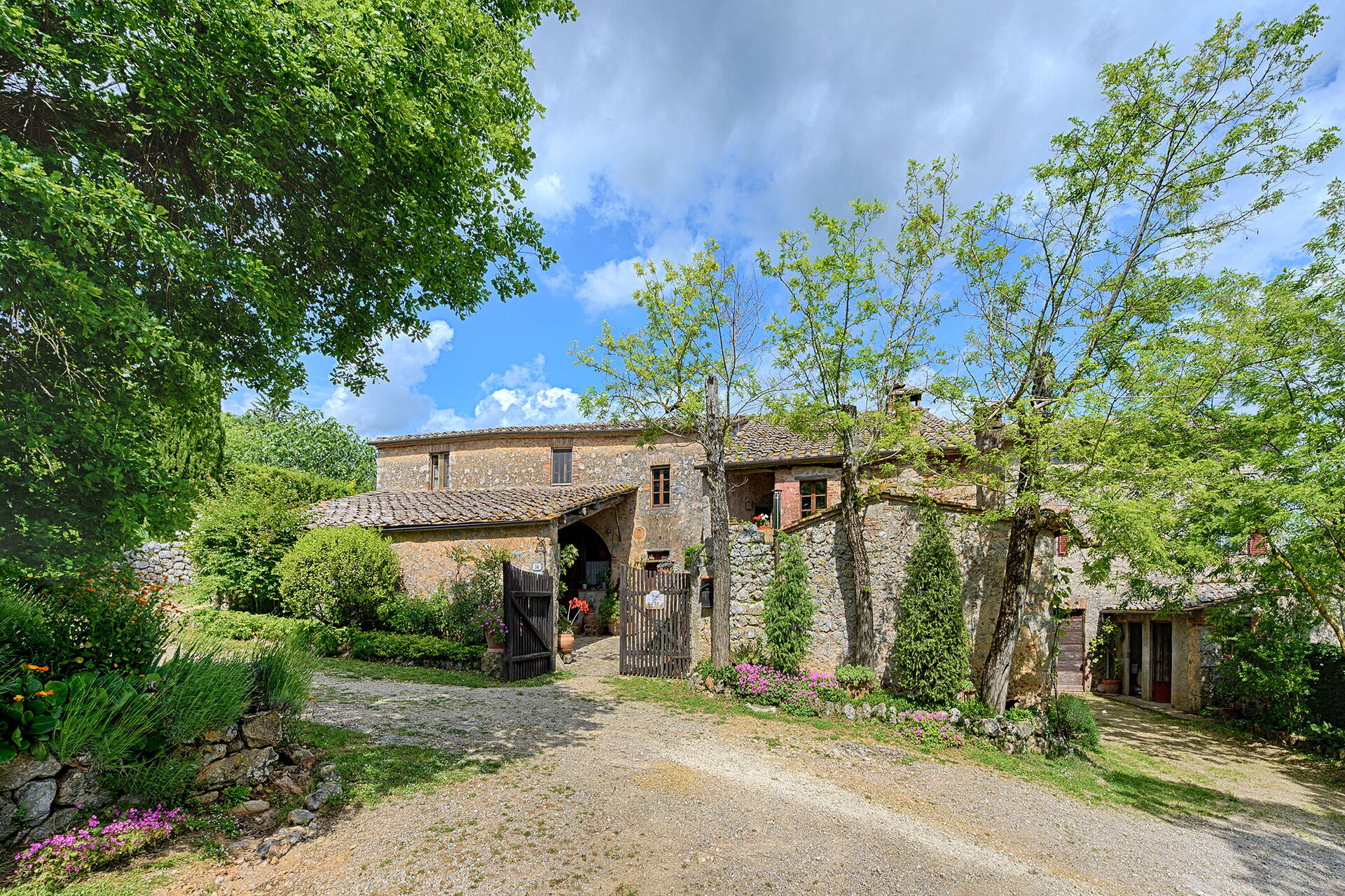 Podere Lorena, Charming Tuscan Farmhouse is located 14 km (9 mi) from Monteriggioni, Italy and only 14 km (9 mi) from Siena in the tourist area "Siena And Surroundings". Holiday rental Podere Lorena, Charming Tuscan Farmhouse is a lovely stone building (300 sq m) that includes private pool, WiFi internet and hot tub. The property can sleep up to 12 people comfortably in six bedrooms with six bathrooms.