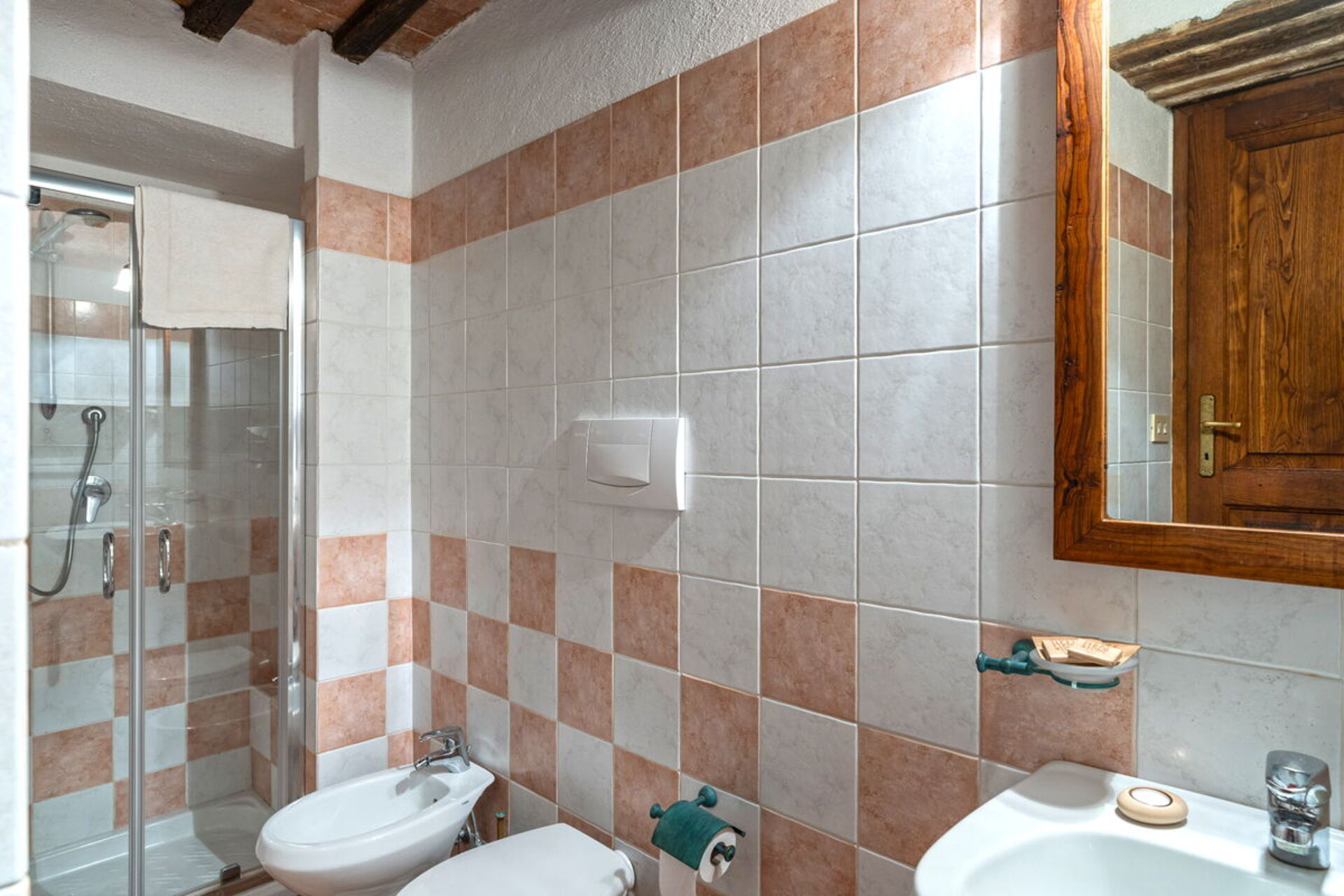 Bedroom + Ensuite Bathroom 2: double bed (length: 1.9m, width: 1.6m), WIFI internet, portable fan, armchair, working desk, basin, bidet, shower, hairdryer, exit to the veranda.