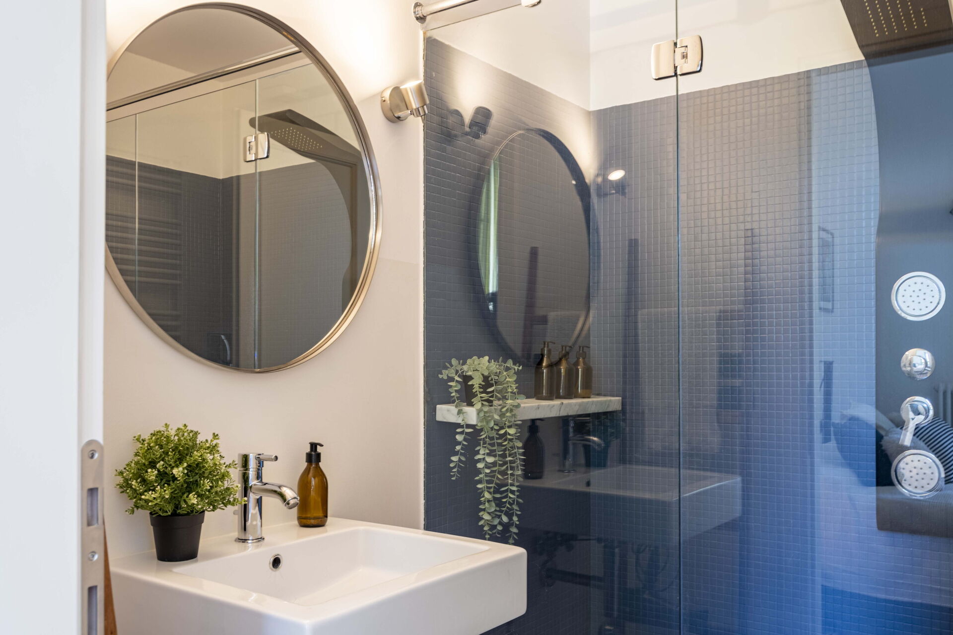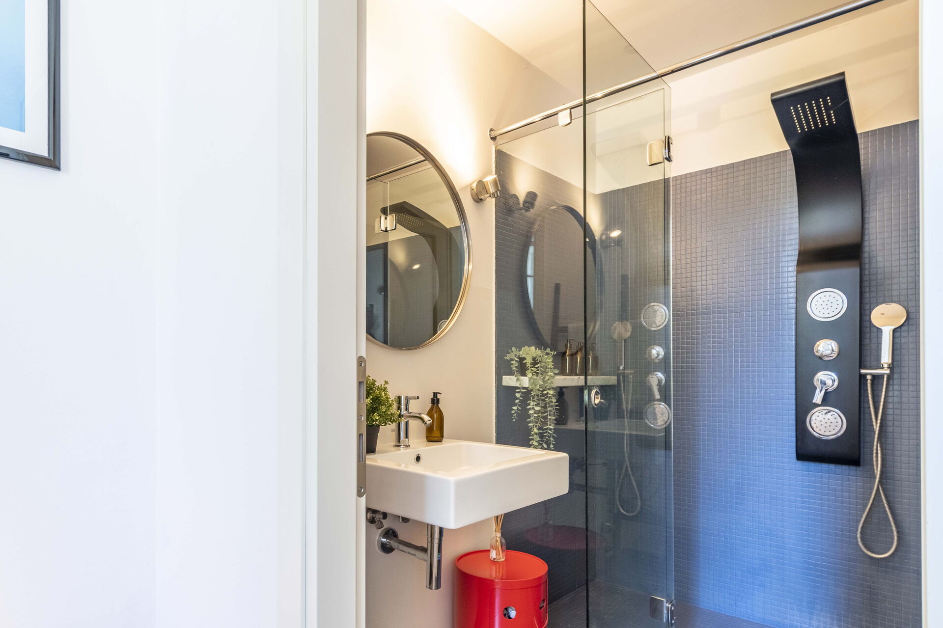 Bathroom: basin, toilet, bidet, shower, hairdryer.
