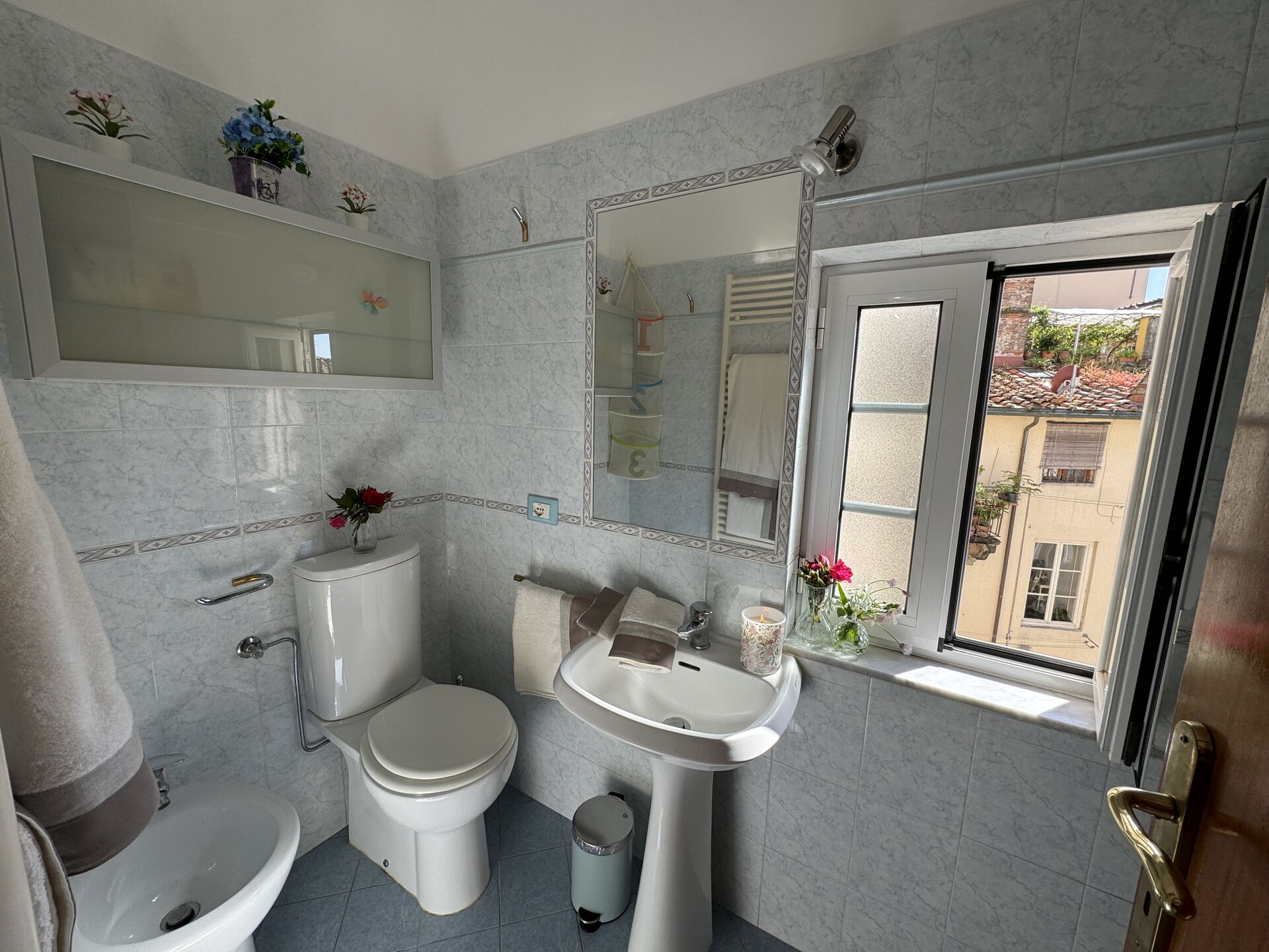Each room has a beautiful view over the city’s roofs, towers (like Torre Guinigi) and the façade of the church of San Frediano.