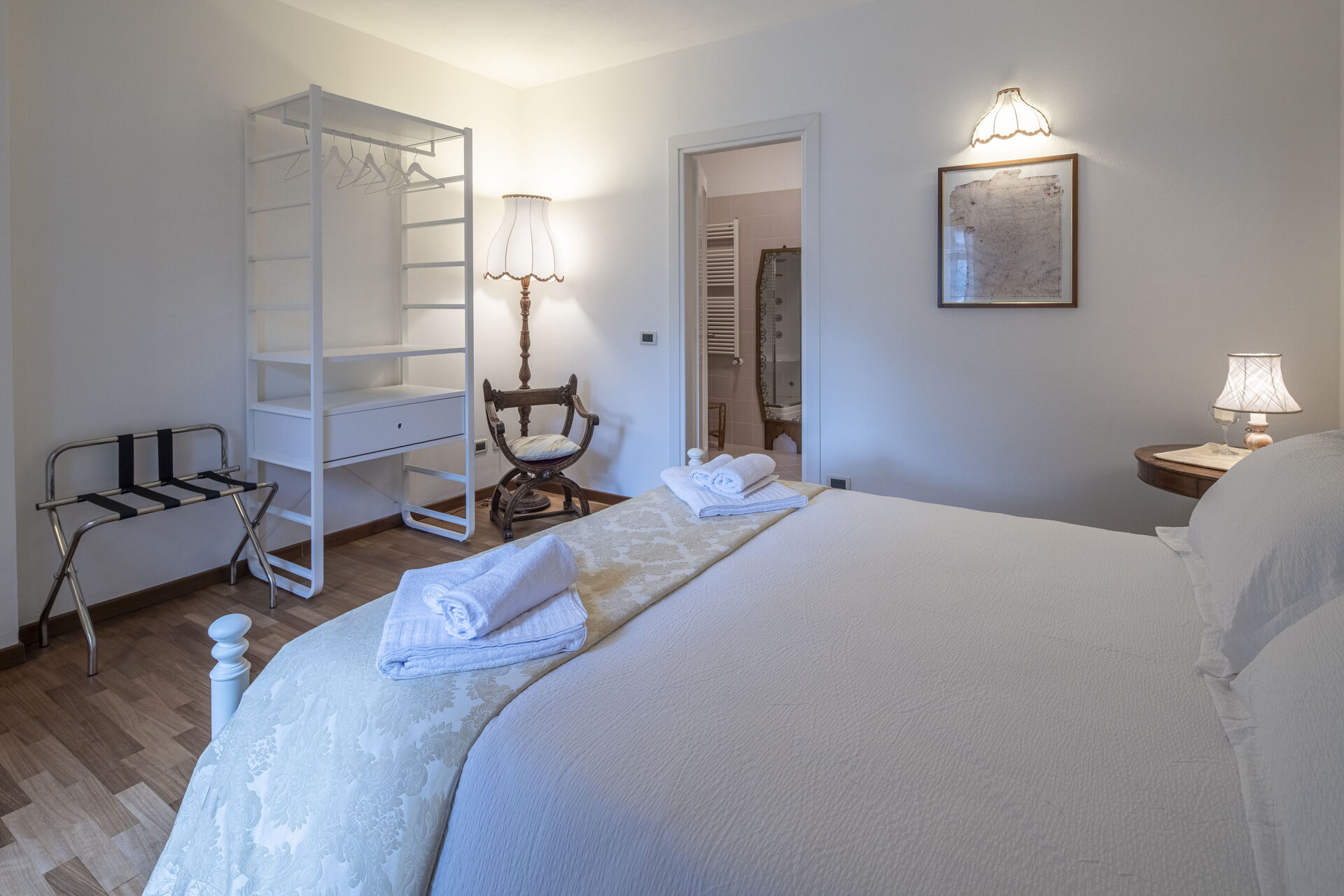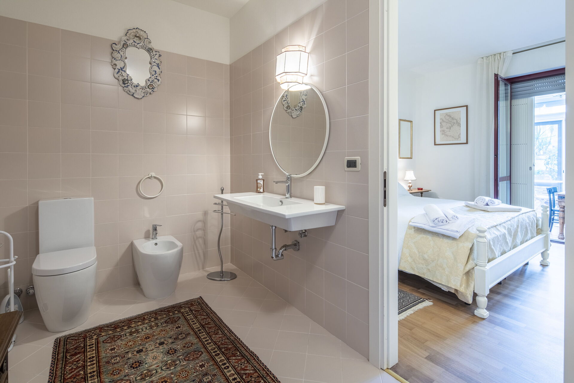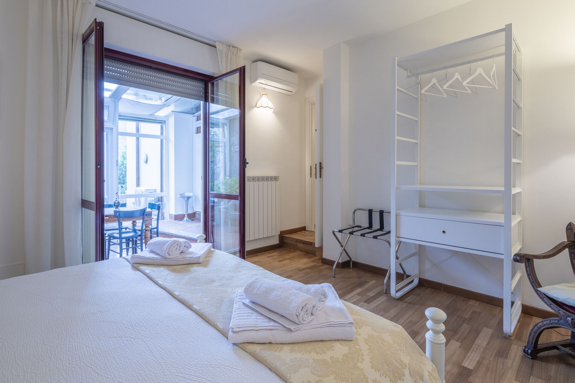 Bedroom + Ensuite Bathroom: double bed, WIFI internet, air conditioning, basin, toilet, bidet, shower, hairdryer, exit to the veranda.