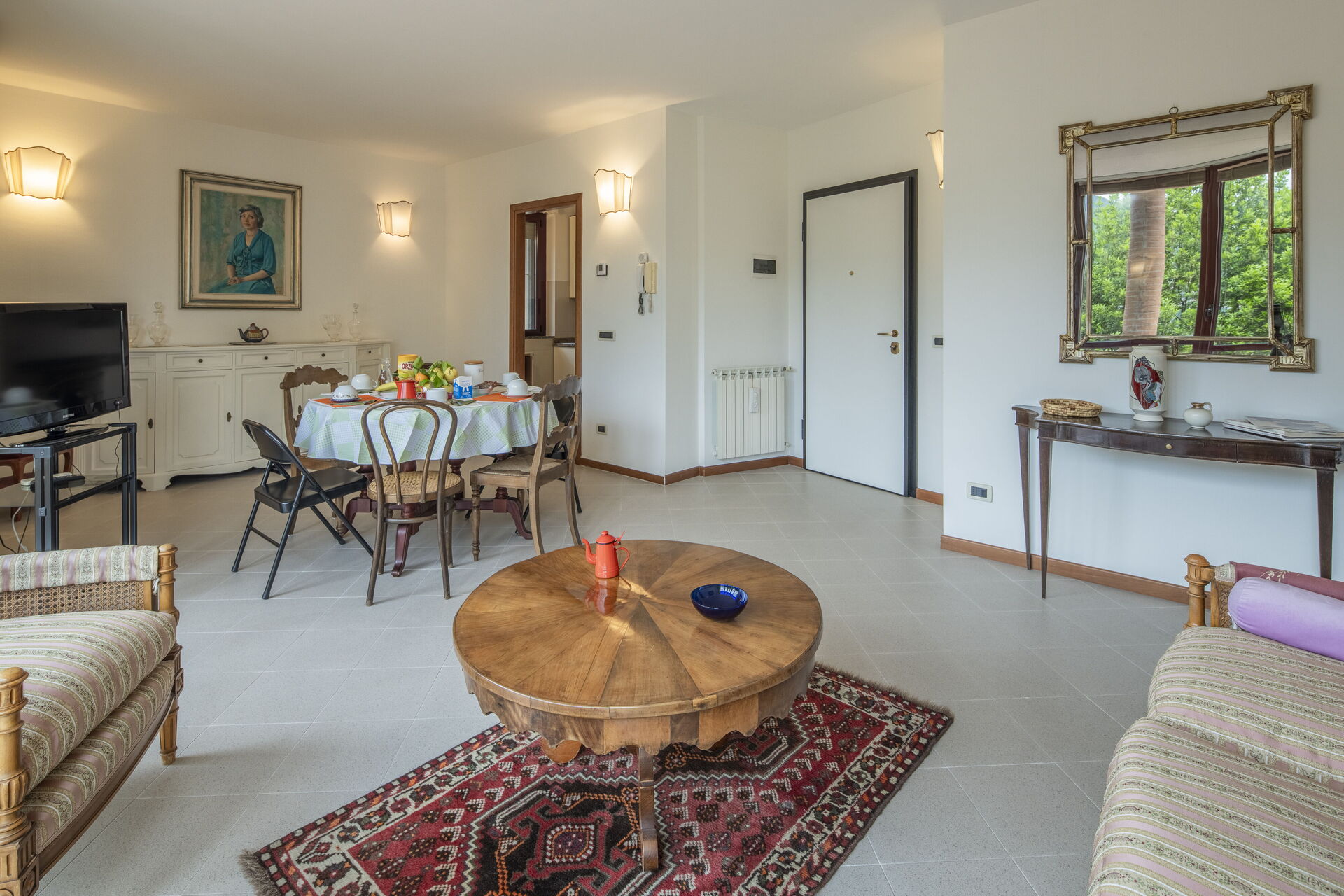 Living room: sofa, two armchairs, dining table, WIFI internet, air conditioning, television.