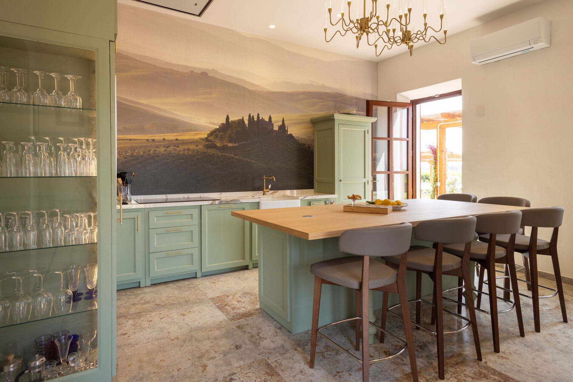 Kitchen (40 m2): dining table, dishwasher, fridge, freezer, microwave, stove top, oven, toaster, italian coffee machine, WIFI internet, air conditioning, six highchairs, smoke detector, exit to the garden, exit to the terrace.