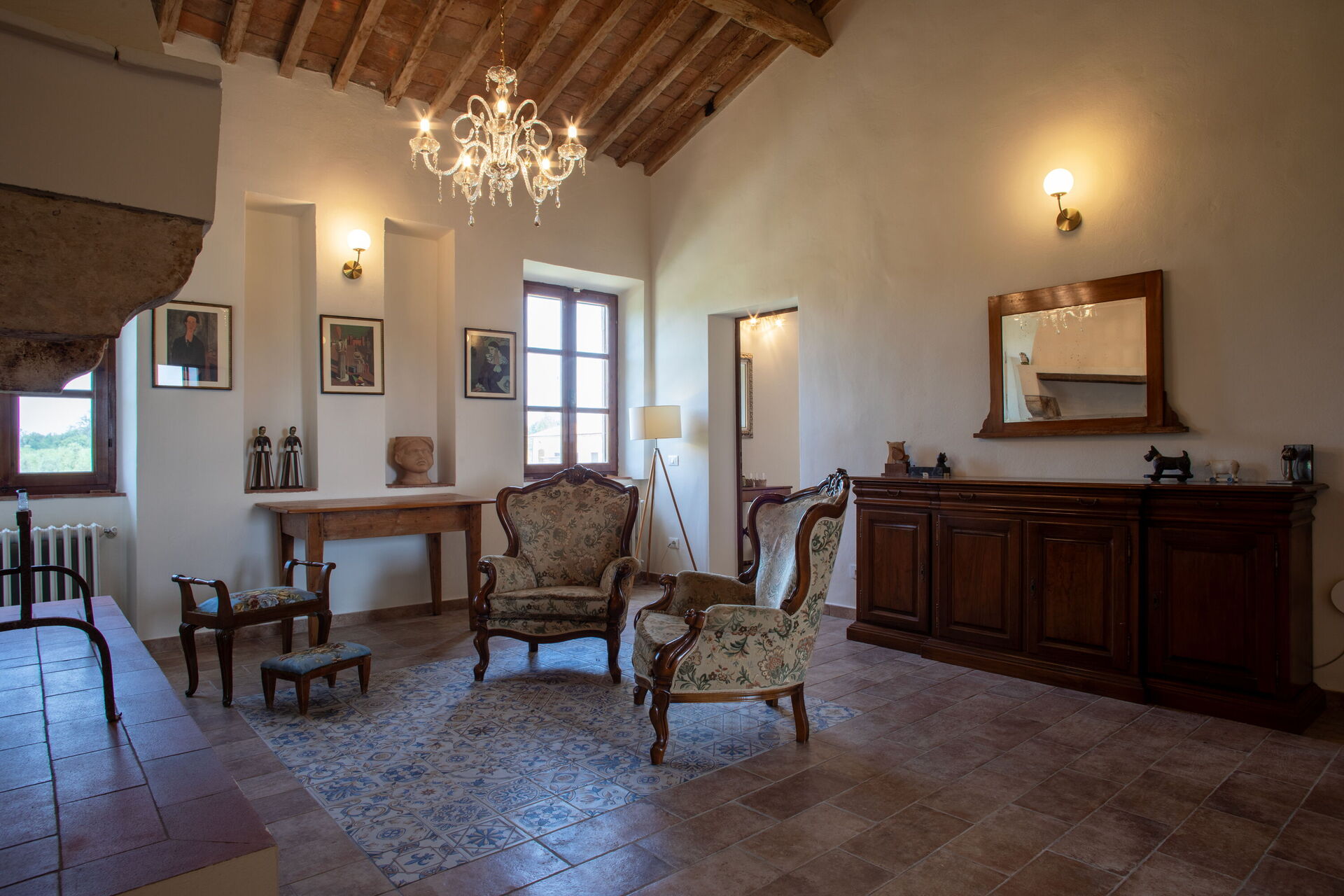Living room (40 m2): two armchairs, working desk, fireplace, WIFI internet, air conditioning, smoke detector.