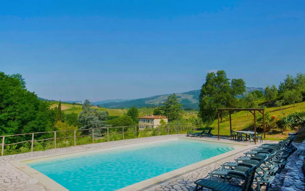 Villa Nicoletta is a beautifully restored 19th-century residential house nestled amidst a tranquil park with ancient trees. Offering breathtaking views of the Montalbano hills with olive groves, vineyards, and the iconic towers of Serravalle Pistoiese, Italy, this villa promises a perfect vacation rental or holiday rental experience. Enjoy the luxury of a private swimming pool, a expansive yard, reliable internet WiFi, and ample parking on the premises.