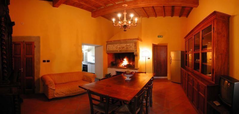 The “Farm apartment (100 sqm) is composed of a large living/dining room with fireplace (which can also function as a barbecue), kitchen (equipped with an oven and a dishwasher), 3 double bedrooms, and 2 bathrooms with shower. Original Florentine terracotta tile floors, wood coffered ceilings, and antique furnishings embellish the inherent beauty of this apartment. The private courtyard includes garden furniture.