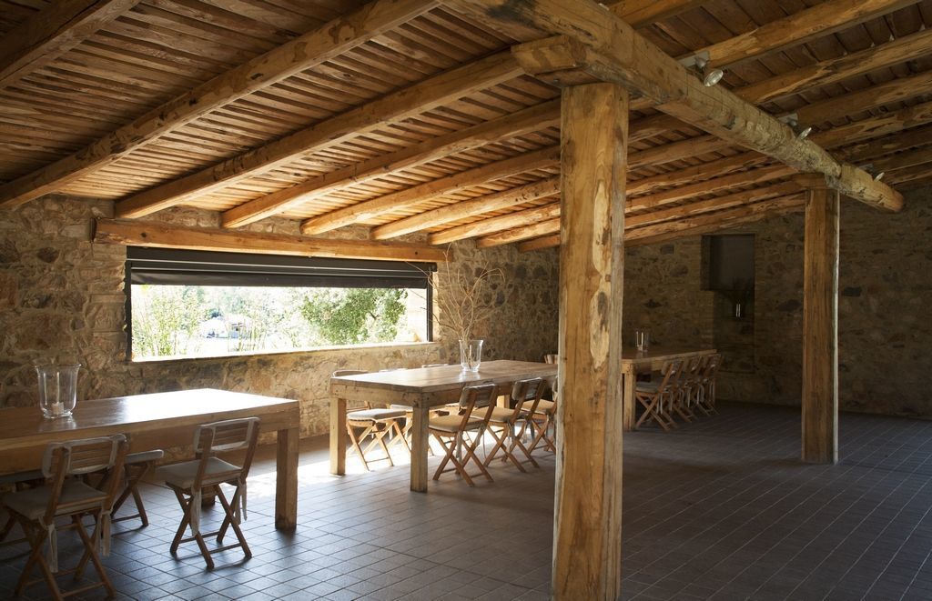 The entrance building hosts the shared areas: the kitchen, the meals room and a communicating large patio with garden view and a large 80 sq.mt. seminar hall, on first floor.