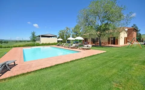 Nous avons bien apprécié la location du grand appartement type maisonnette. Nous étions une famille de quatre personnes et avec trois chambres séparées. L\'espace était bien suffisant et il ne manquait rien de particulier au niveau de l\'équipement. Un accès direct à la superbe piscine que nous n\'avons que peu utilisé car le temps n\'était pas très beau. Un bon rapport avec les propriétaires malgré la différence de langue. La situation est cependant assez éloignée de tout commerce (magasin, restaurant etc.) ce qui est une difficulté à prendre en compte. À recommander à ceux qui recherchent le calme et la quiétude des grand espaces de la Toscane.