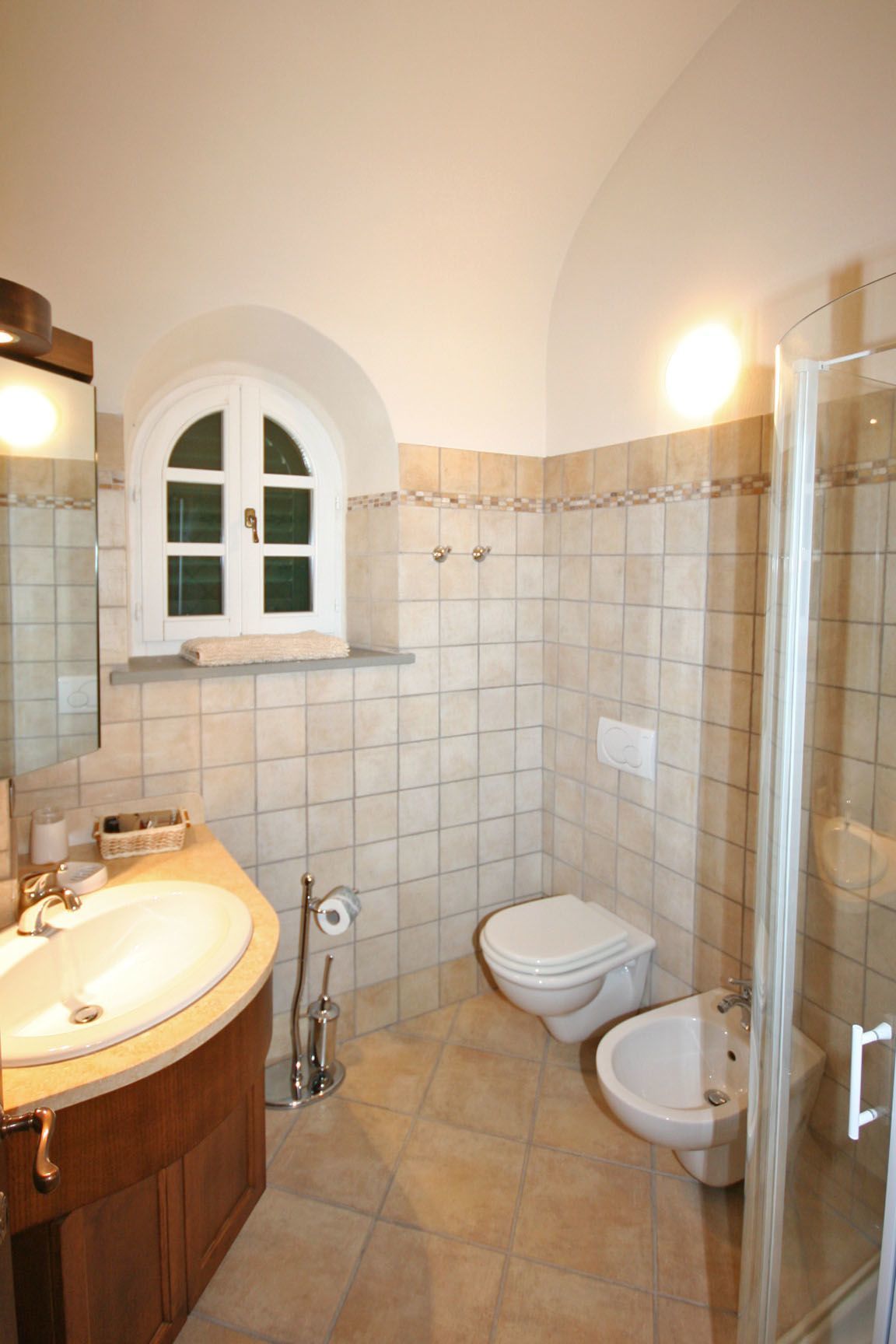 Die Räume des von uns gemieteten Apartments sind geschmackvoll eingerichtet und fast das wichtigste die Betten bieten hohen Schlafkomfort mit sehr guten Matratzen. In diesem für uns fast zu heißen letzten Mai Tagen mit über 30 Grad haben uns die dicken Mauern der Villa vor der Hitze geschützt. Auch das die Villa ca. 590 Meter über den Meeresspiegel liegt hat die Temperaturen erträglicher gestaltet, hier hatten wir ca. 2-3 Grad niedrigere Temperaturen als in Volterra. Frieren muss man nicht weil die Heizung kraftvoll und schnell die Räume wärmt, das konnten wir in den ersten Tagen ausprobieren wo es noch 20 Grad Außentemperatur hatte.