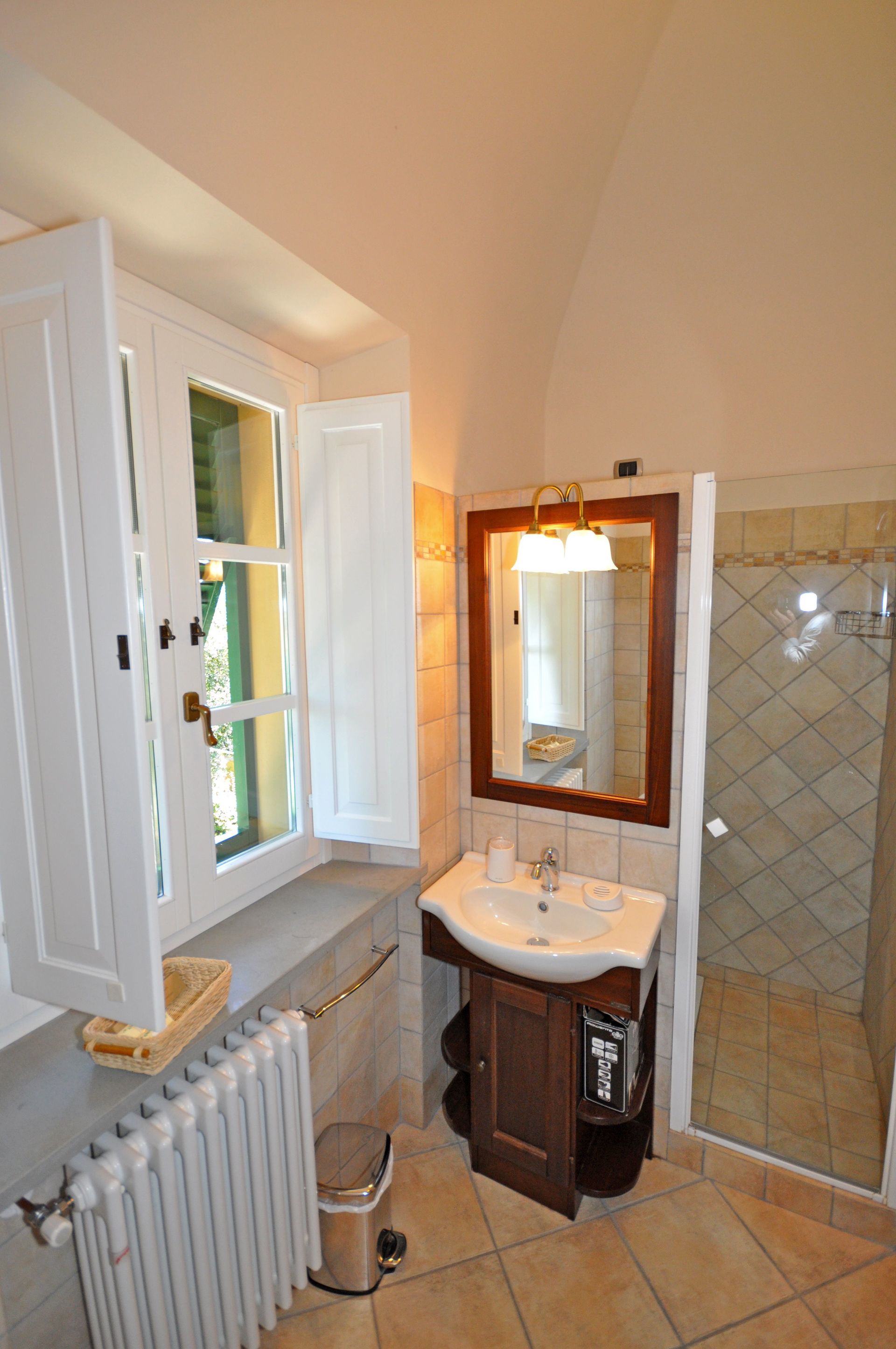 The rooms of the rented apartment are tastefully decorated and, the most important, the beds provide comfortable sleep with very good mattresses. In these last days of May with over 30 degrees °C the thick walls of the villa have protected us from the heat. Also, the villa is about 590 meters above sea level so the high temperatures are more bearable, here we had about 2-3 degrees lower than the temperatures in Volterra. One will not suffer cold either because the heater warms the rooms quickly and vigorously, we could try this durign the first days when it was still 20 degrees outside temperature.