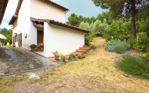 The outdoor spaces at Manor house "Tribolina" are a true highlight of the estate, offering guests an immersive experience in the unspoiled Tuscan landscape. The natural garden, spanning the property's generous 23-hectare grounds, is maintained exclusively for the use of guests and provides a serene setting for relaxation and outdoor living. Garden furniture is thoughtfully arranged throughout the space, allowing guests to sit back and absorb the panoramic views of the surrounding countryside. A barbecue is also available, making the garden an ideal venue for alfresco dining and convivial evenings under the open sky. The elevated position of the property at 550 meters above sea level ensures that the outdoor areas are bathed in sunlight throughout the day, enhancing the sense of warmth and well-being that defines a stay at this remarkable estate.